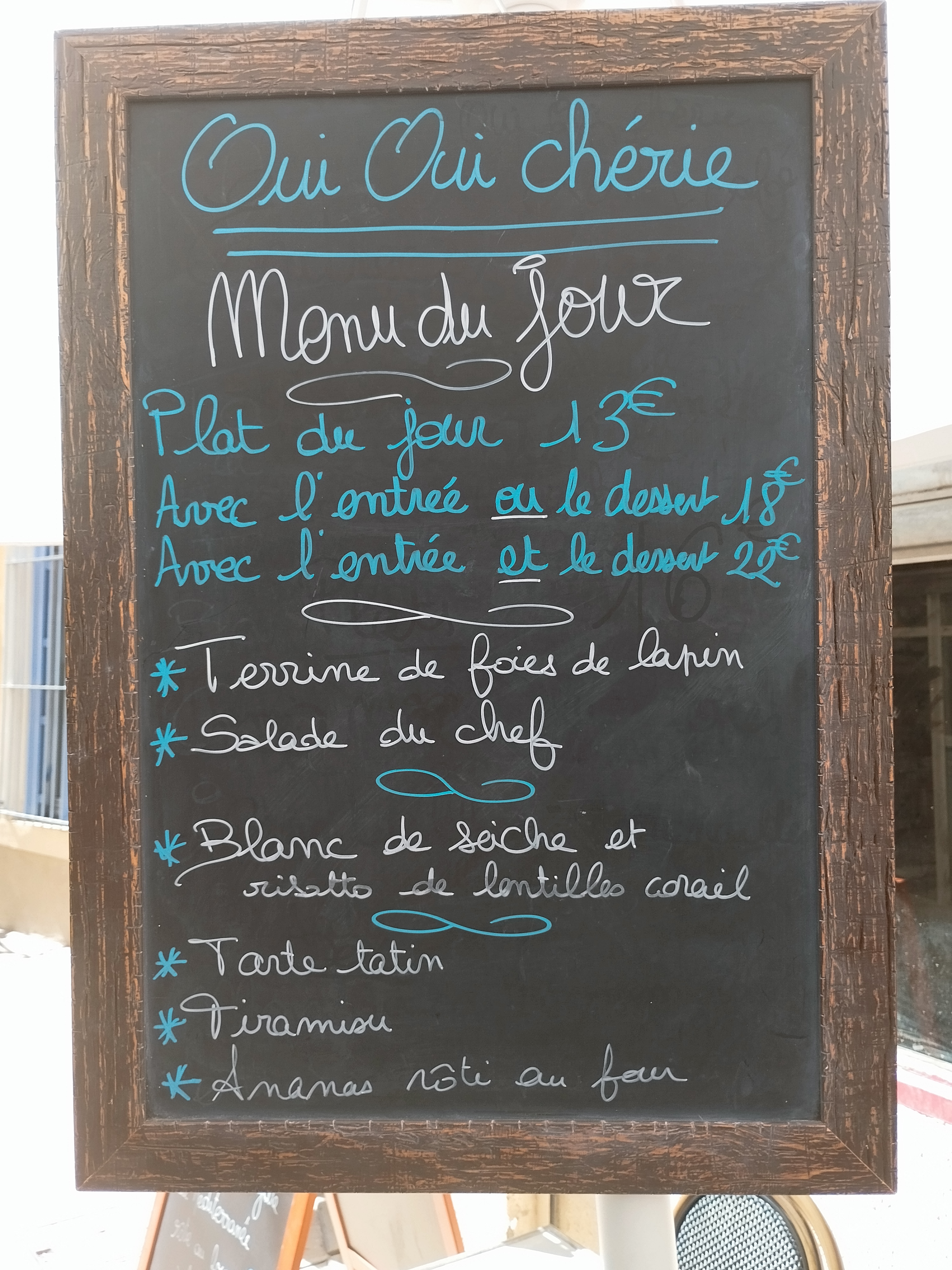 Nous sommes allé souper chez Oui Oui Chérie pendant notre trop court séjour dans la merveilleuse Narbonne. Nous avons été servis par qui nous croyons être la copropriétaire et je dirai que du début à la fin, ce fût un réel plaisir! Les plats que nous avions choisis étaient absolument délicieux et généreux. C'était la première fois que je goûtais aux souris d'agneau. Quelle découverte! Nous avons aussi accompagné notre repas avec un vin blanc bio appelé Épouse-moi! du Domaine Le pas de la Dame. Ce vin était aussi une très belle découverte. Le décor de ce très sympathique endroit mérite d'être mentionné. Il y a plein de choses intéressantes à découvrir ici et là. Bref, cette soirée nous laisse un très bon souvenir qui accompagne bien ceux que nous a donné la très belle Narbonne. MERCI!❤️