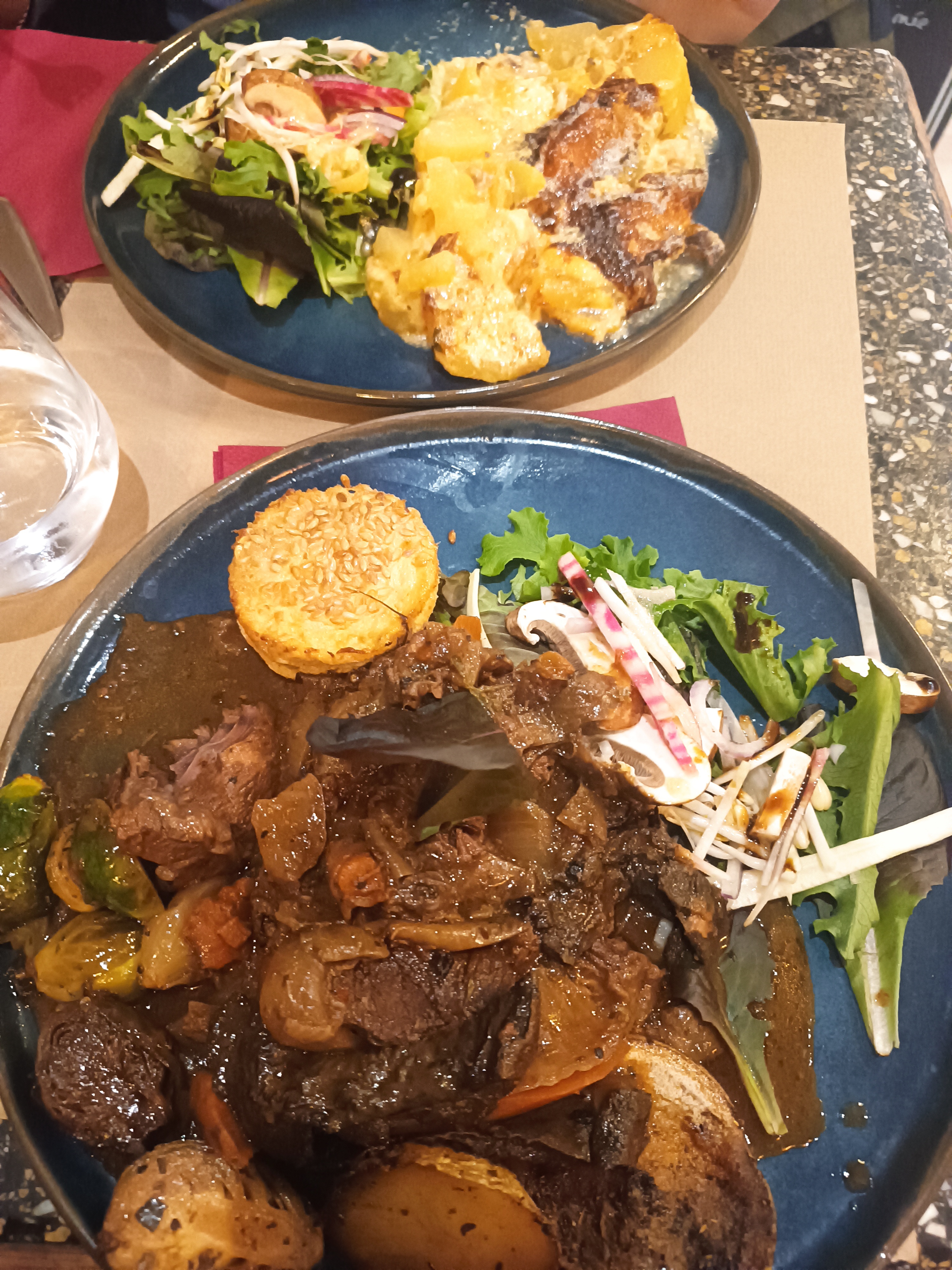 Vivement que l'échafaudage disparaisse et mette ce resto en valeur. Belle et très bonne découverte. Assiette copieuse, originale et goûteuse. Formule entrée plat dessert ou plat dessert ou entrée plat à un très bon prix. C'est sûr, nous reviendrons avec grand plaisir !!