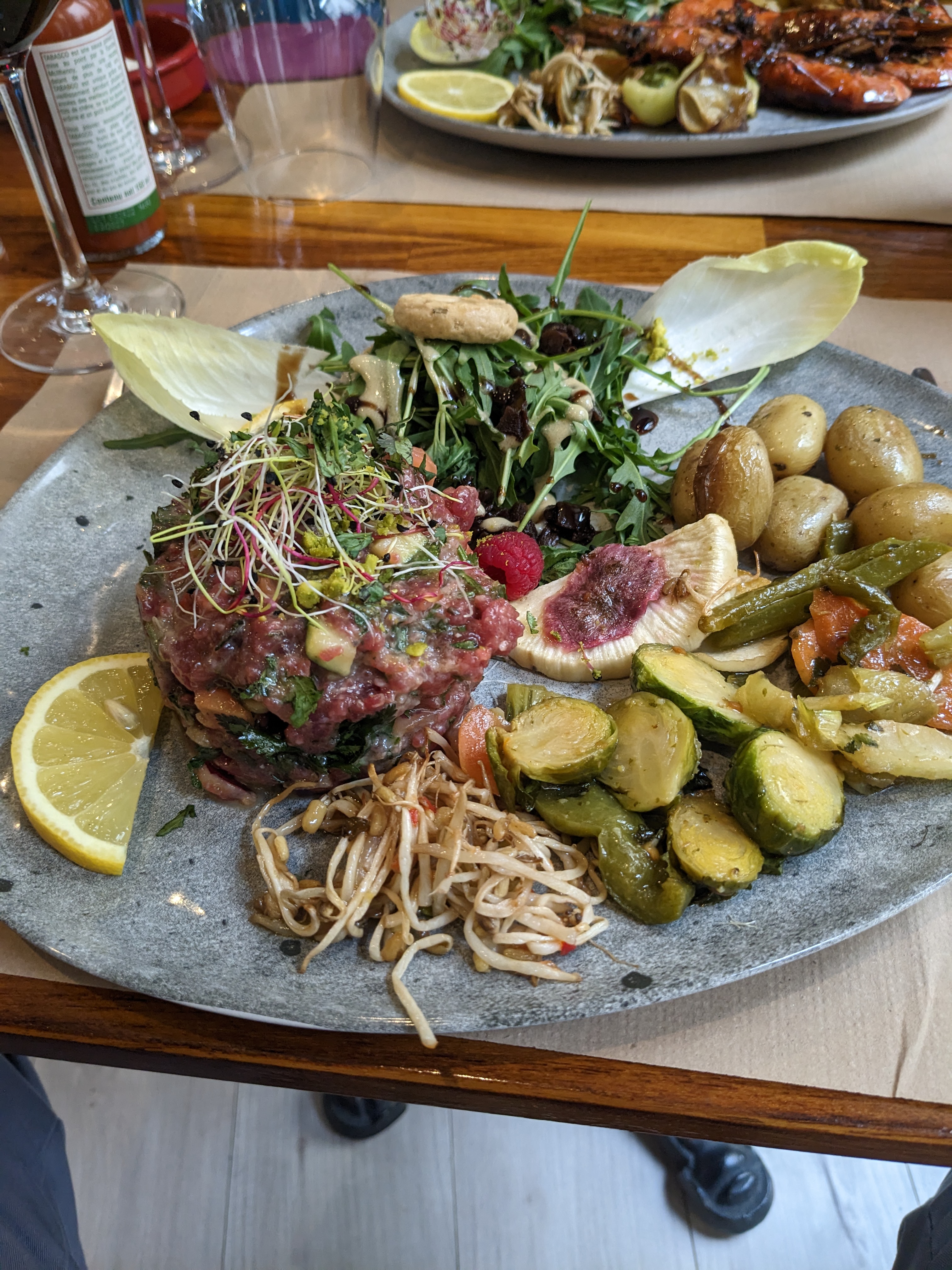 Merci pour le moment! Tartare de bœuf magique, assiette semblable à une palette d’artiste 🎨 couleurs et saveurs tout est à sa place! Le service par la patronne est top moumoute ✌️, un réel plaisir dans une ambiance de quartier chaleureuse… La tarte tatin vient signer ce chef d’œuvre ! Merci!