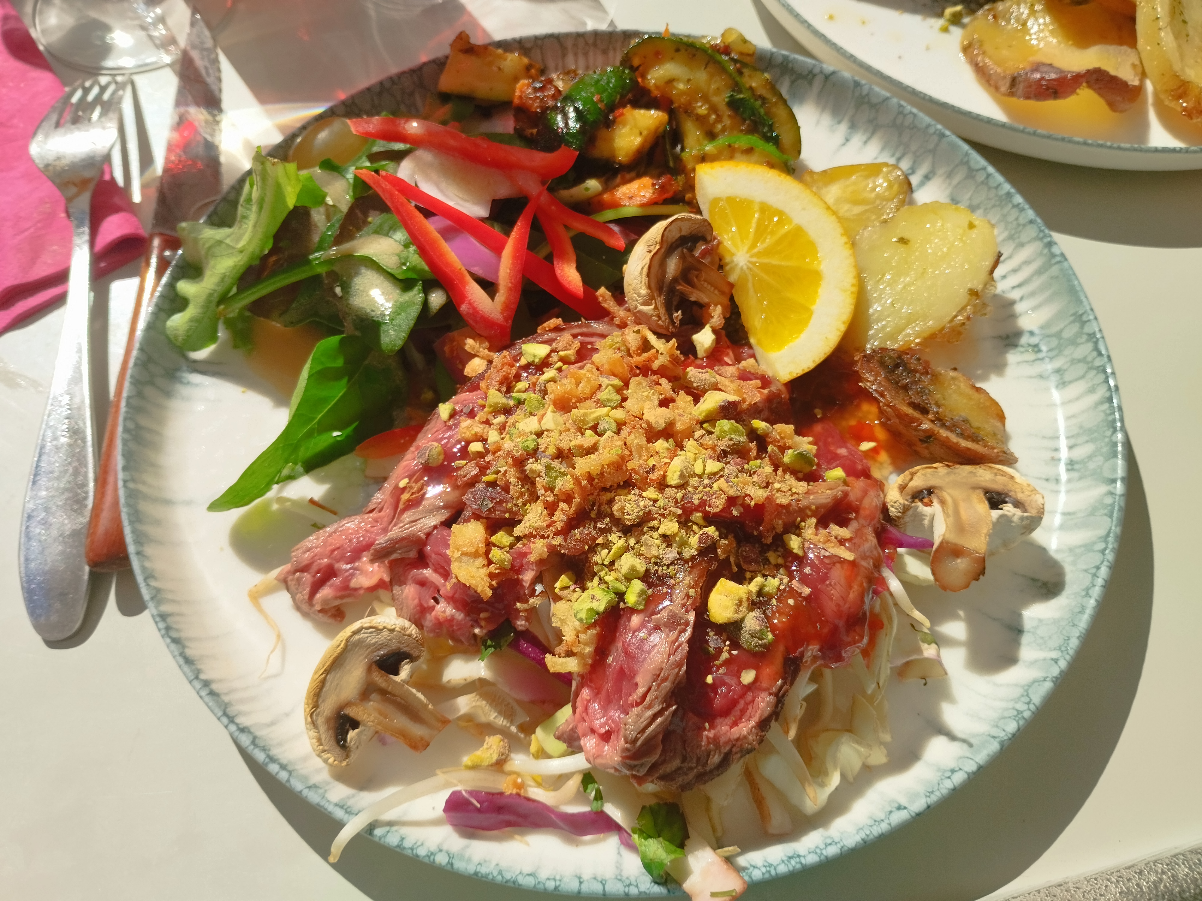 L'endroit est charmant et la nourriture est moyenne. Nous avons eu une soupe de légumes un peu fade avec de l'huile de truffe et une salade délicieuse mais tout à fait normale. Service attentionné