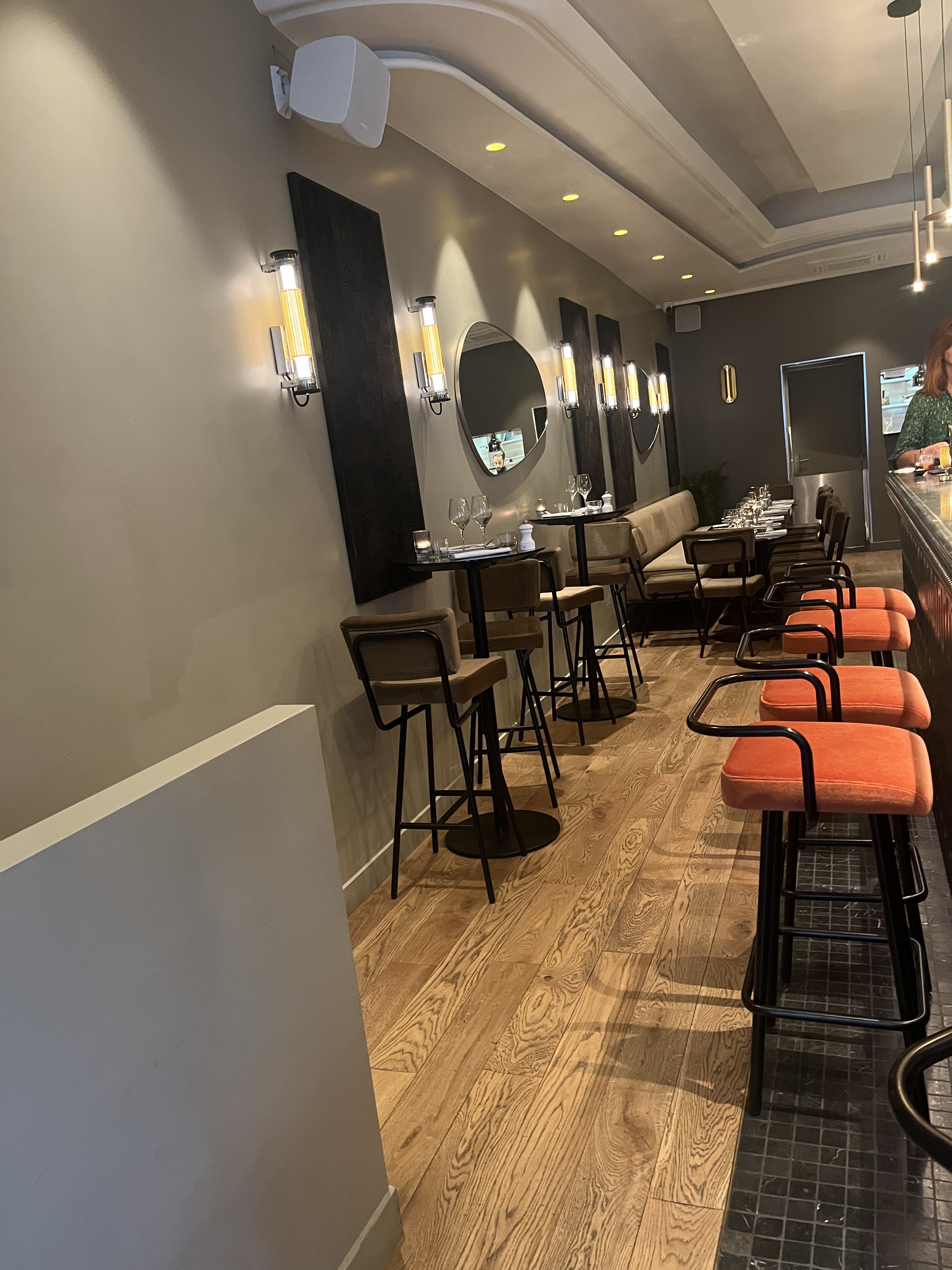 Une très belle adresse qui tend à devenir la nouvelle référence pour un restaurant de qualité, et festif à la fois aux abords de Saint-Lazare. Venu découvrir l'établissement quelques jours après son ouverture à l'occasion d'un dîner, j'ai été agréablement surpris par la qualité de la nourriture ainsi que l'ambiance conviviale y régnant. Une fois entré, vous vous sentirez comme chez vous grâce à la décoration chaude et cosy. Le service est rapide et la carte propose un large choix de plats réalisés par un chef provenant de Ferrandi par ailleurs! Mention spéciale au Suprême de volaille qui fut un vrai délice. Le restaurant convient également aux déjeuner d'affaires le midi avec une carte du jour spécifique. Pour les amateurs de cocktails, un mixologue est spécialement présent pour en préparer. Un très belle surprise, je recommande fortement.