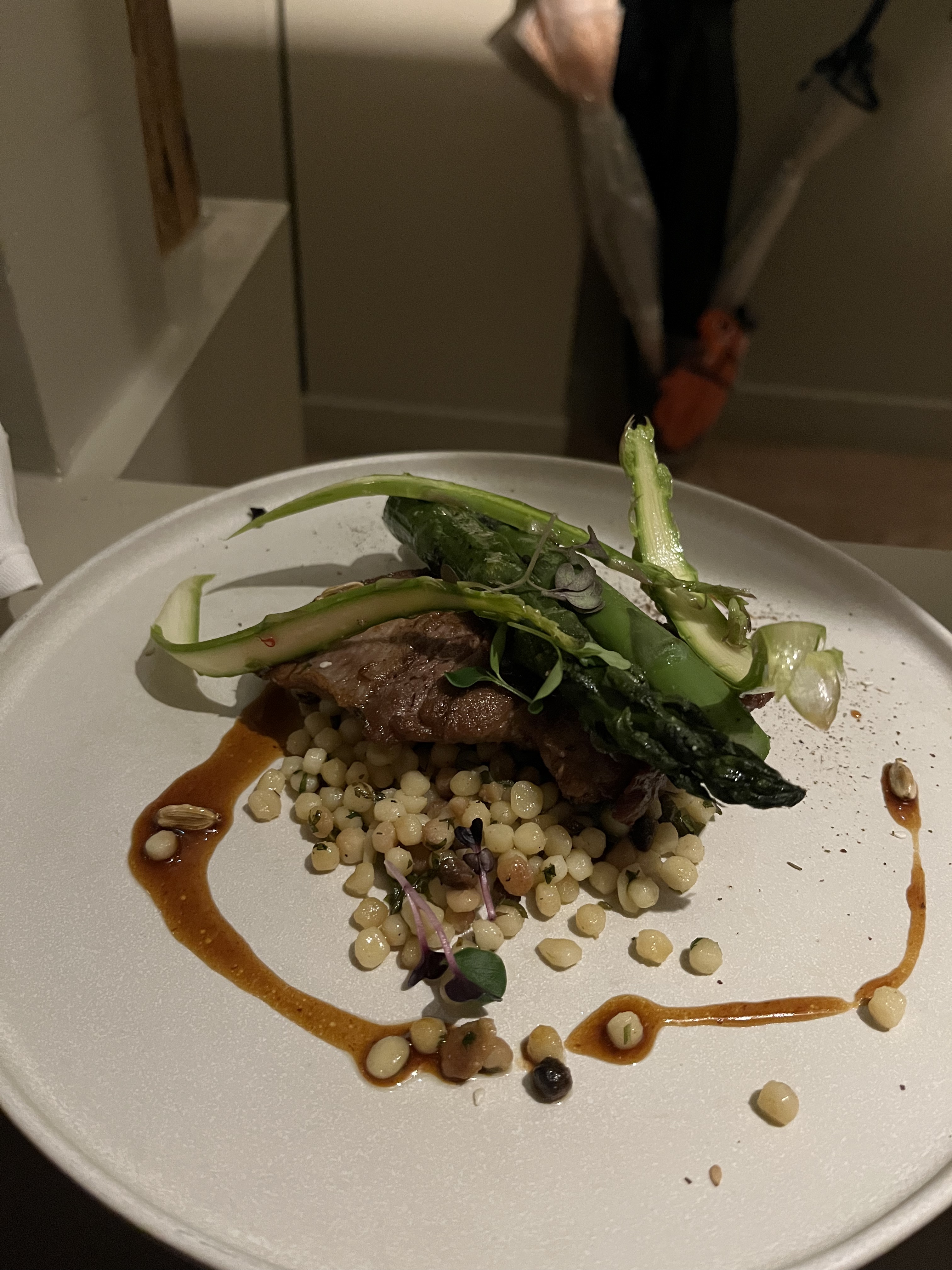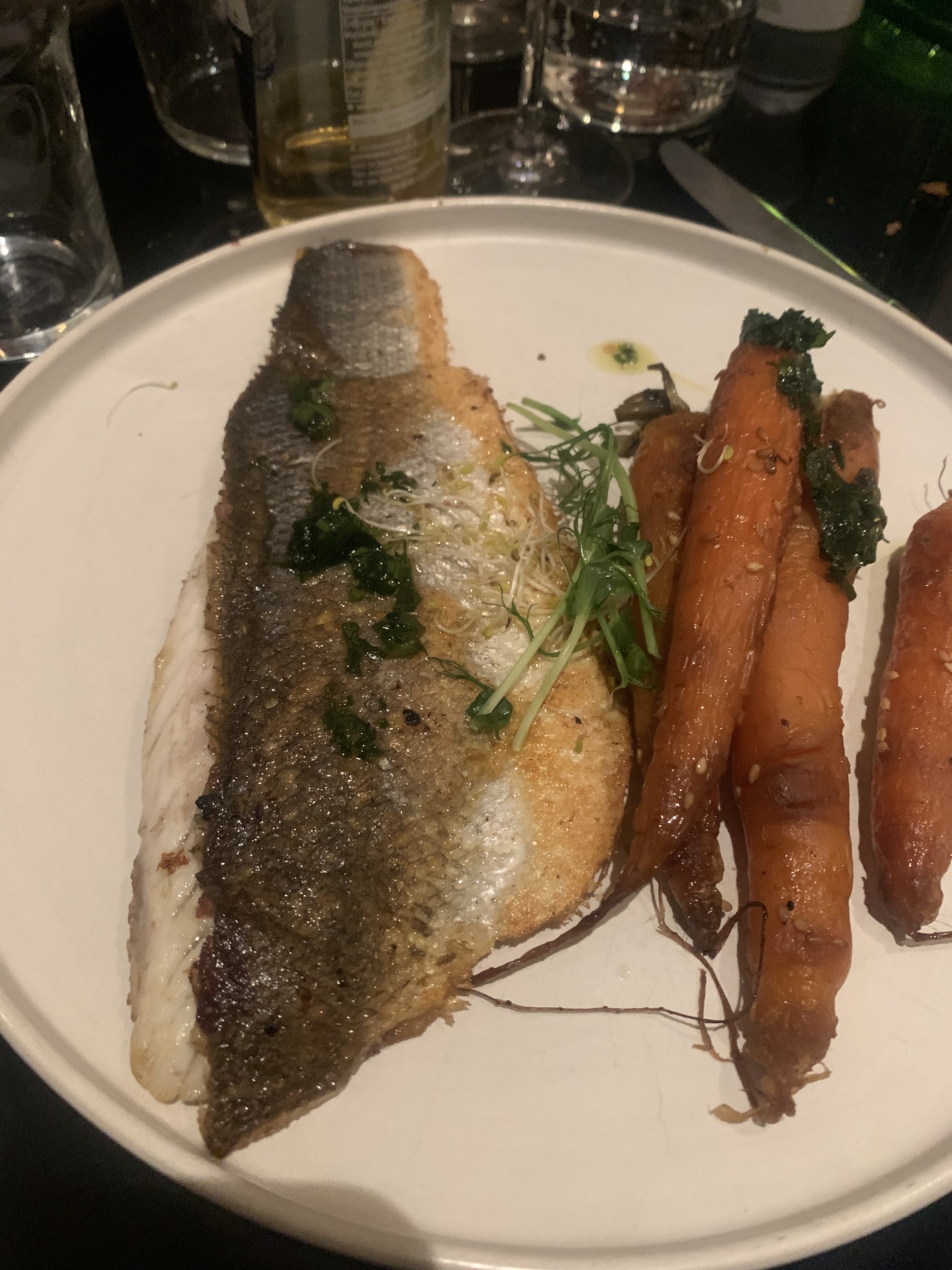 super restaurant avec un plus grand chef j'ai eu un poisson avec des épinards dessus incroyable et une petite pomme de terre 🥔 en accompagnement aussi des gens fantastiques à qui parler 😄❤️