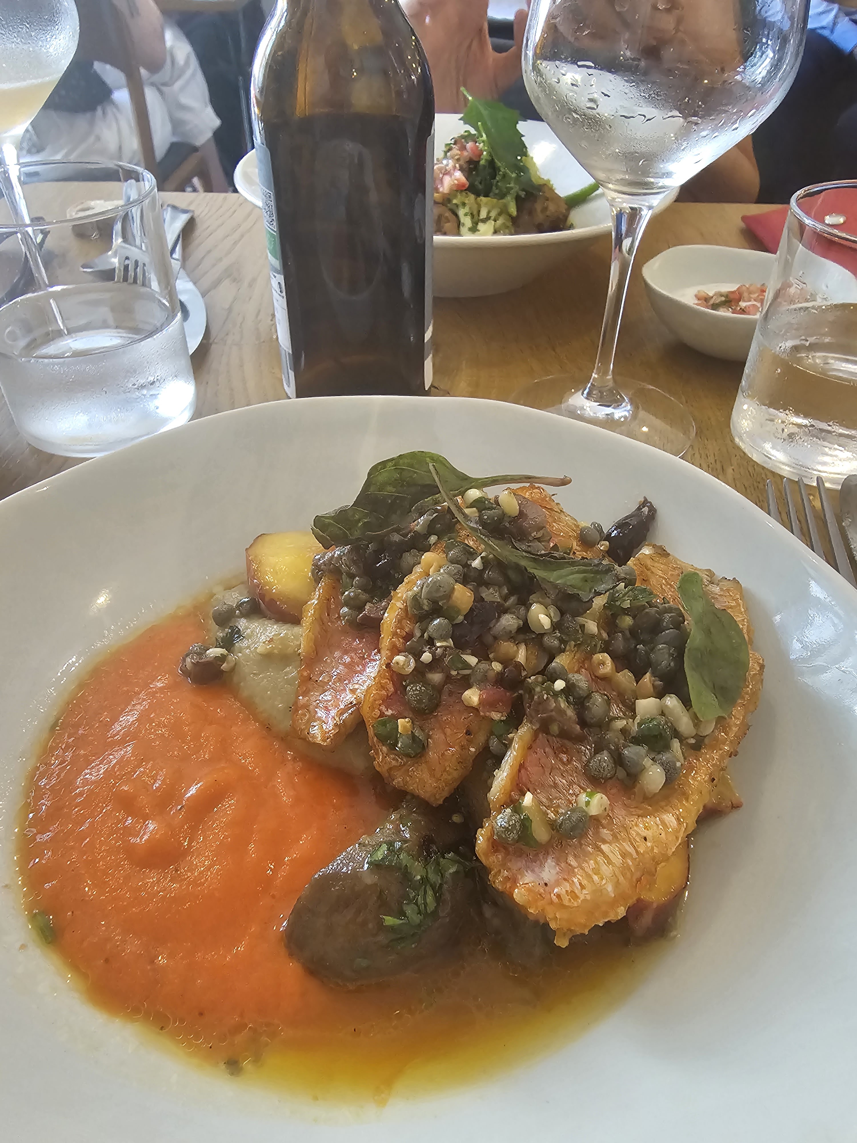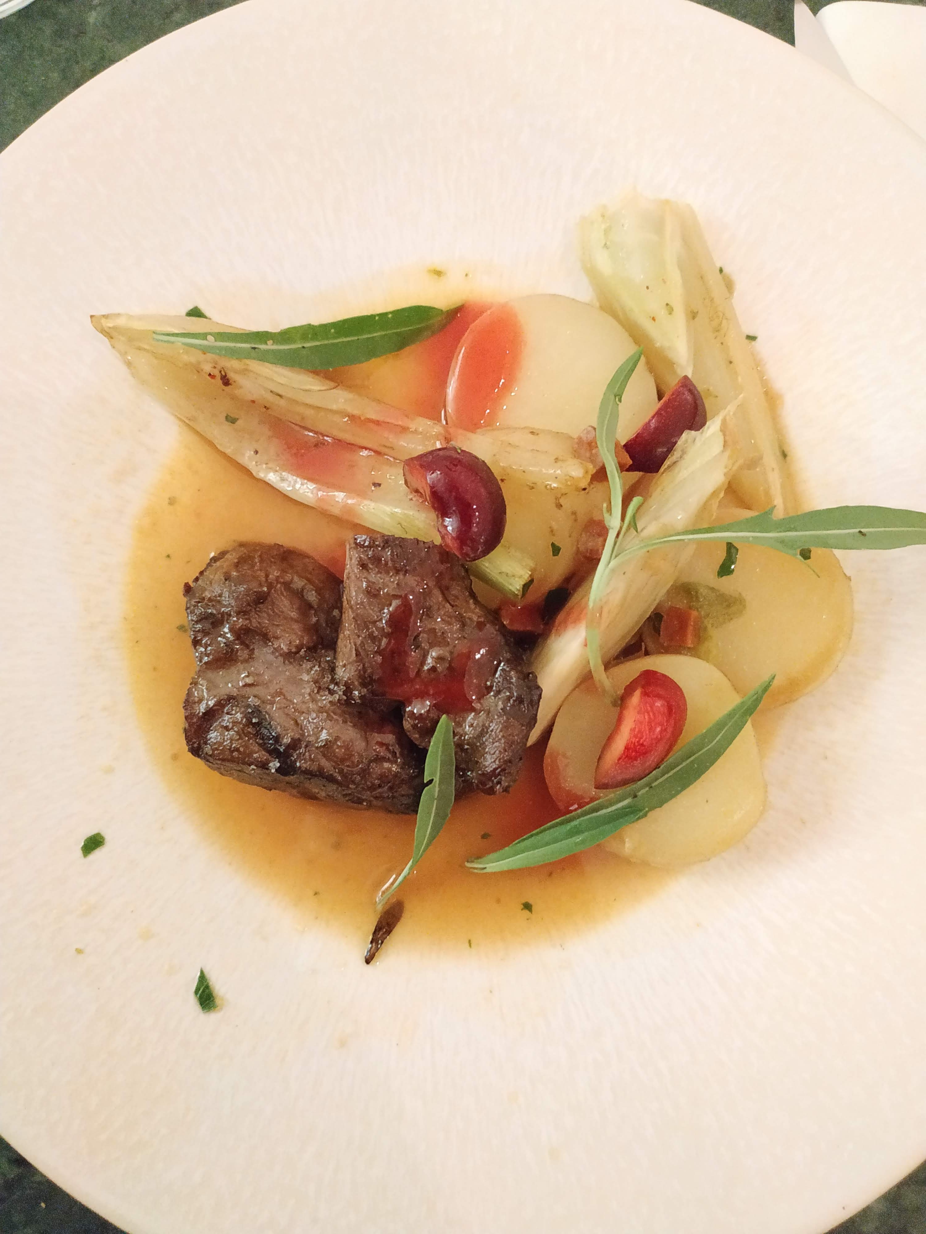Nous avons passé un excellent moment pour ce déjeuner en tête-à-tête. Sériole de Mediterranée sur lit de brocolis, dans un bouillon de poisson et encornets accompagnés de fenouil braisés. Tout était délicieux. Nous reviendrons.