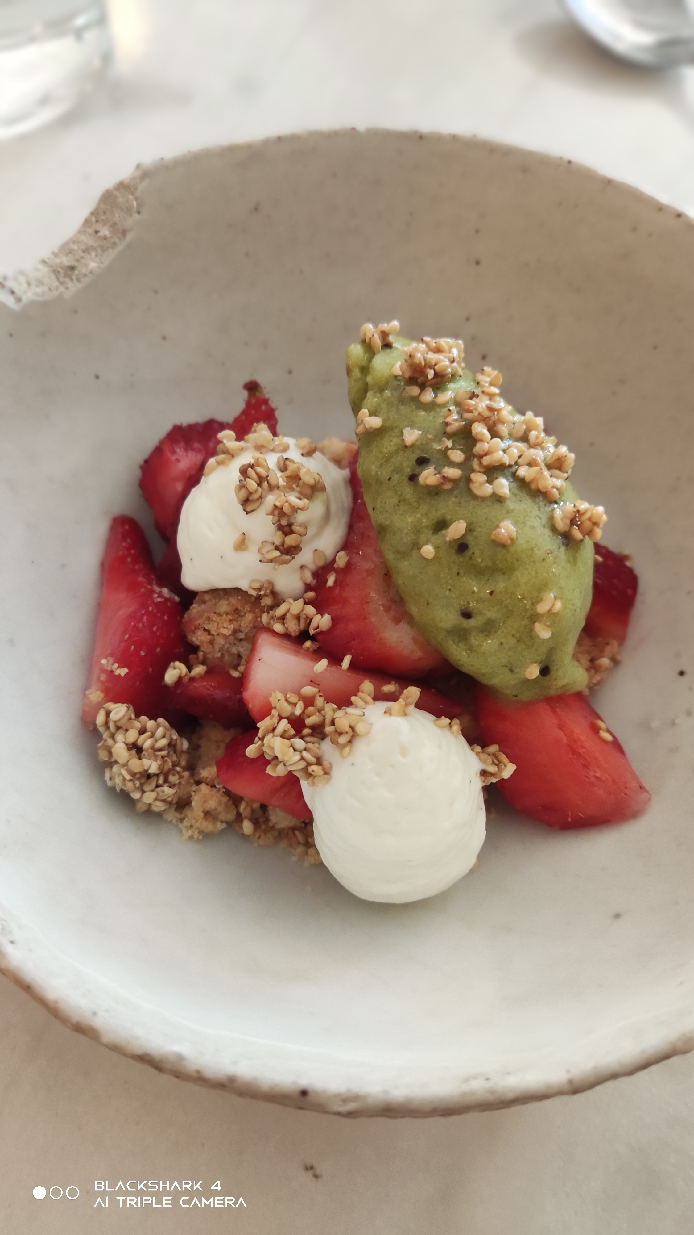 Une bonne adresse, le cadre est charmant, un menu efficace. Les plats sont équilibres avec un mélange du saveur sucré salé, et chapeau pour le dessert qui est très léger mais avec plein de textures. Une équipe jeune et dynamique. Bravo 👏