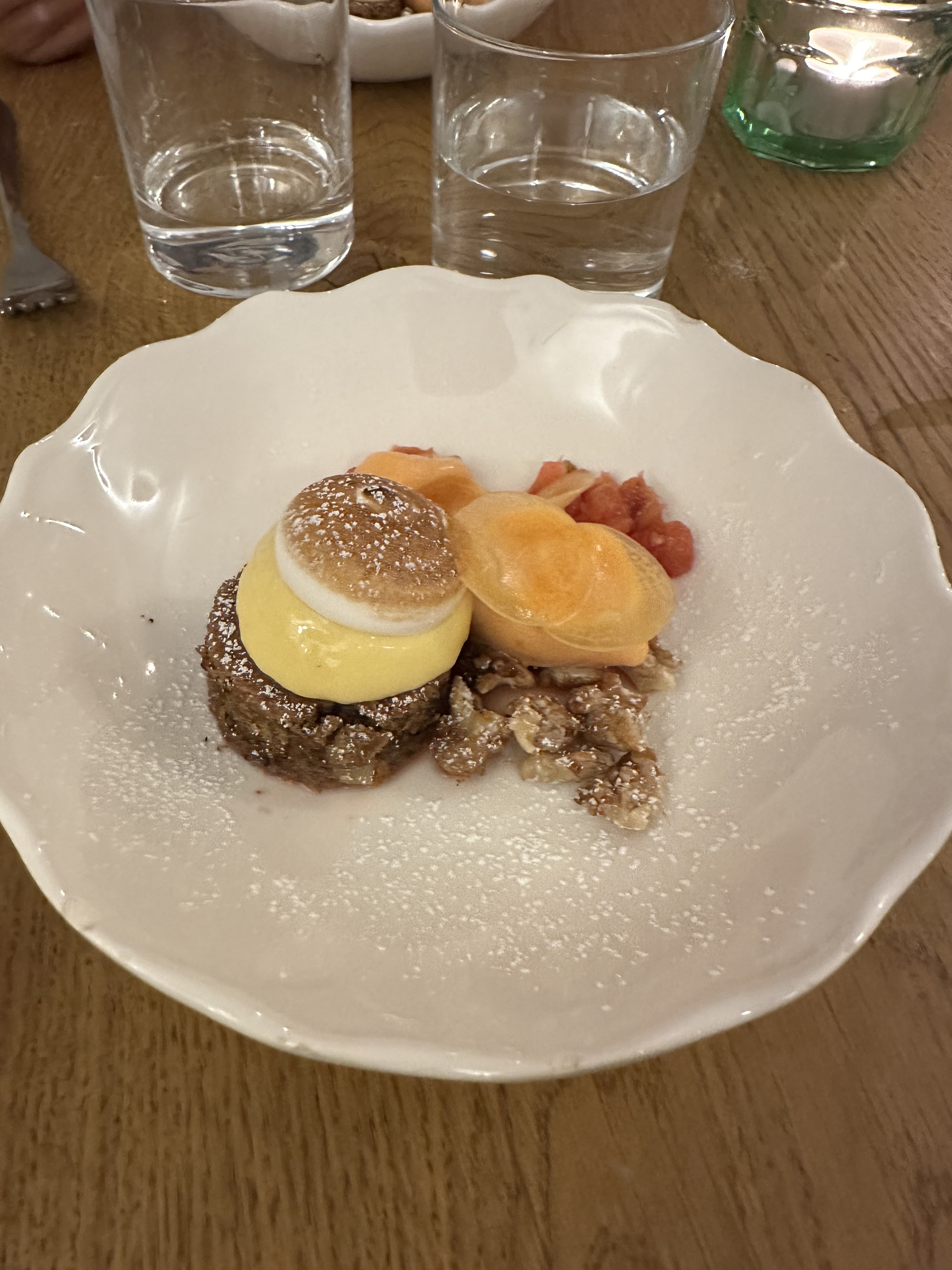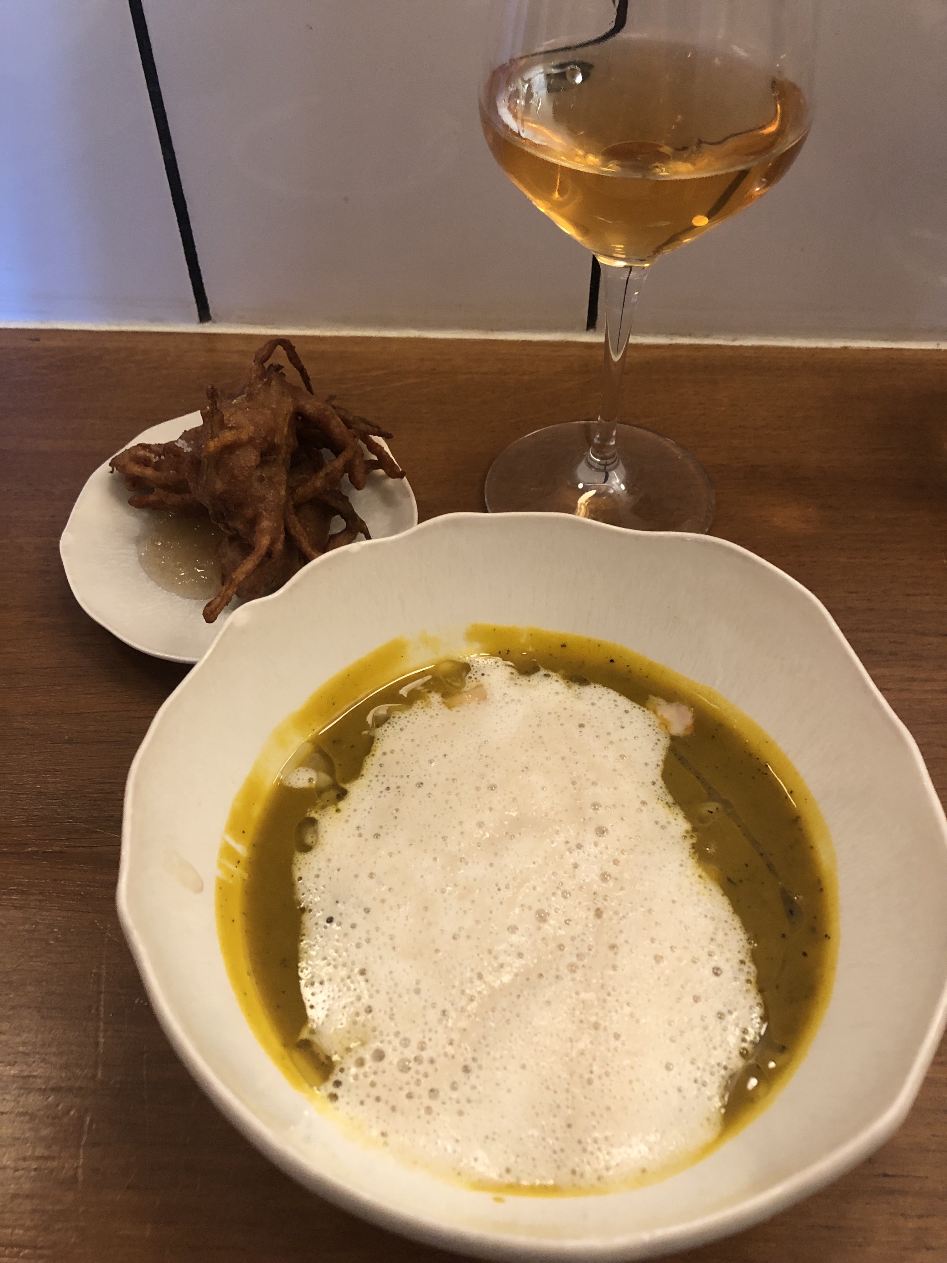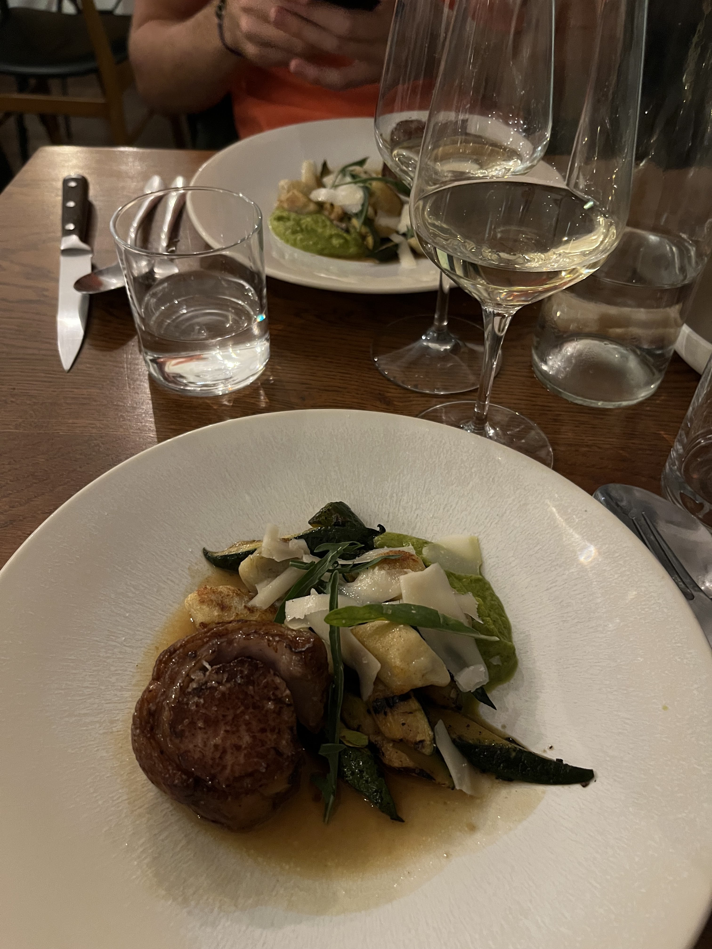 Diner (il y a un menu unique a 39 euro en 4 plats) et vin excellents: des saveurs inventives et fraiches, des portions plutôt généreuses. Le dessert ne m'a pas emballée tout le reste oui. Je suis moins enthousiasmée par le service un peu chichiteux à mon goût, mais ça c'est une question très personnelle, d'autres apprécieront. L'accueil a quoi qu'il en soit été tout à fait cordial