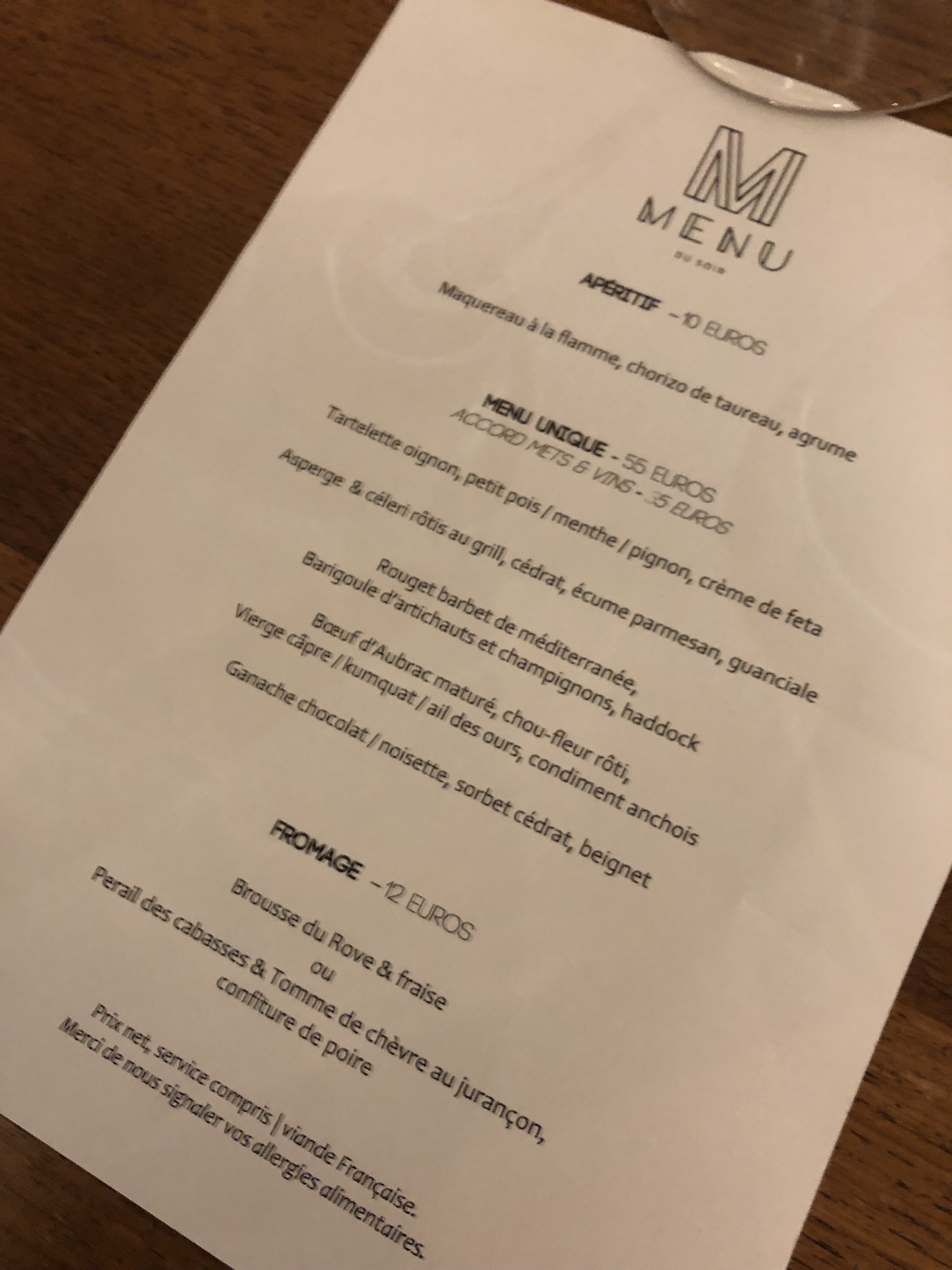 Déçue: l’accord mets vin n’était pas à la hauteur. Les vins sont facturés trop chers par rapport à ce qu’ils valent, Un vin bio qui pétille même pas remplacé (donc qu’on n’a pas bu), et aucun geste commercial (ils auraient pu offrir l’apéritif du coup mais non). Sinon bon plats, avec un bémol sur l’aubrac trop cuite (quel sacrilège), où la sauce anchois était trop forte et les cromeskis très banals.
