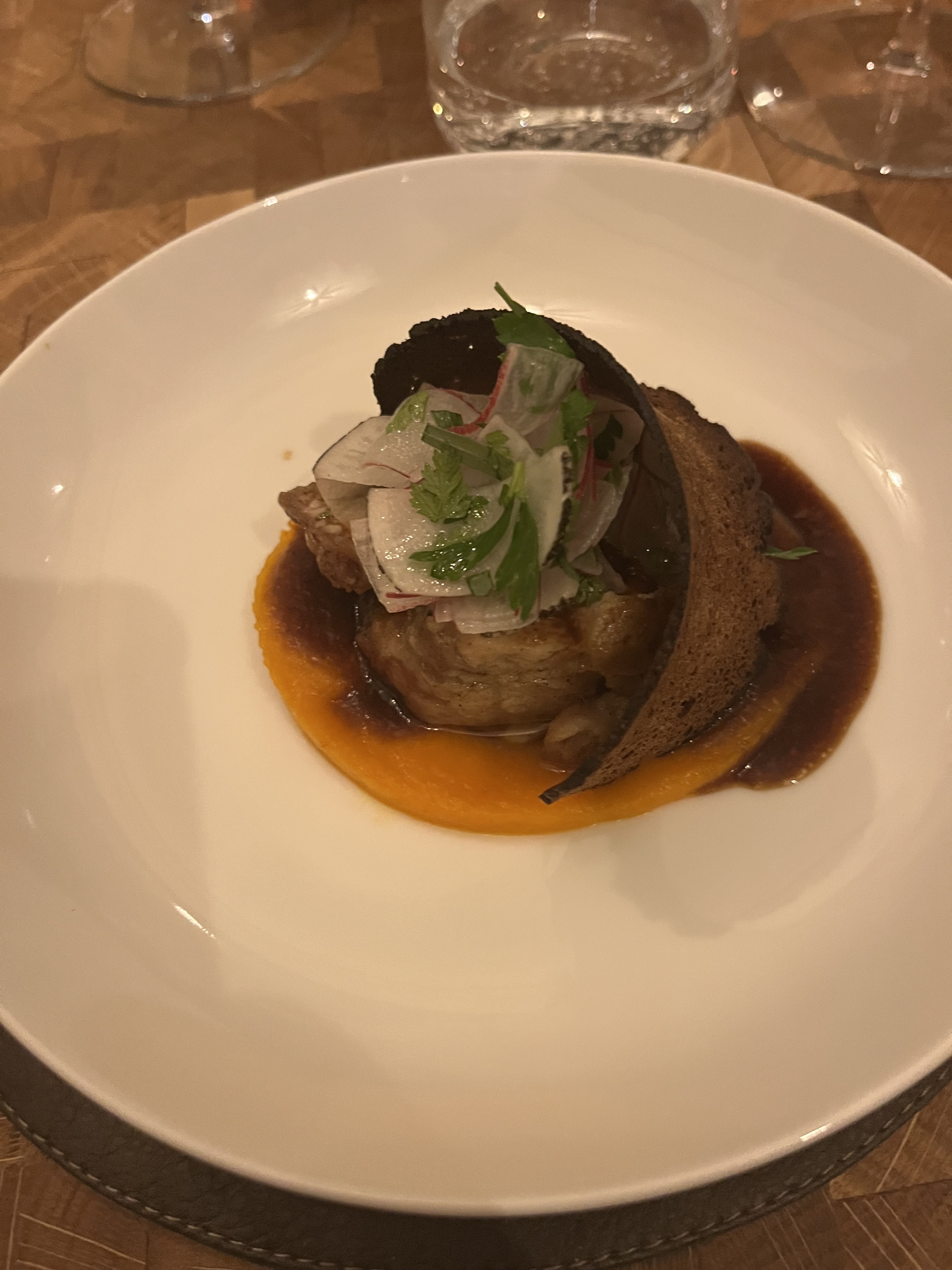 Plus qu'un menu à déguster, c'est un livre ouvert où on découvre l'histoire au fil des assiettes. Le chef n'est pas un simple cuisto, c'est un véritable poète! Une découverte incroyable, un lieu noble, un service et un accueil à la hauteur de ce lieu. Je recommande cette petite pépite pour les épicuriens de la gastronomie.