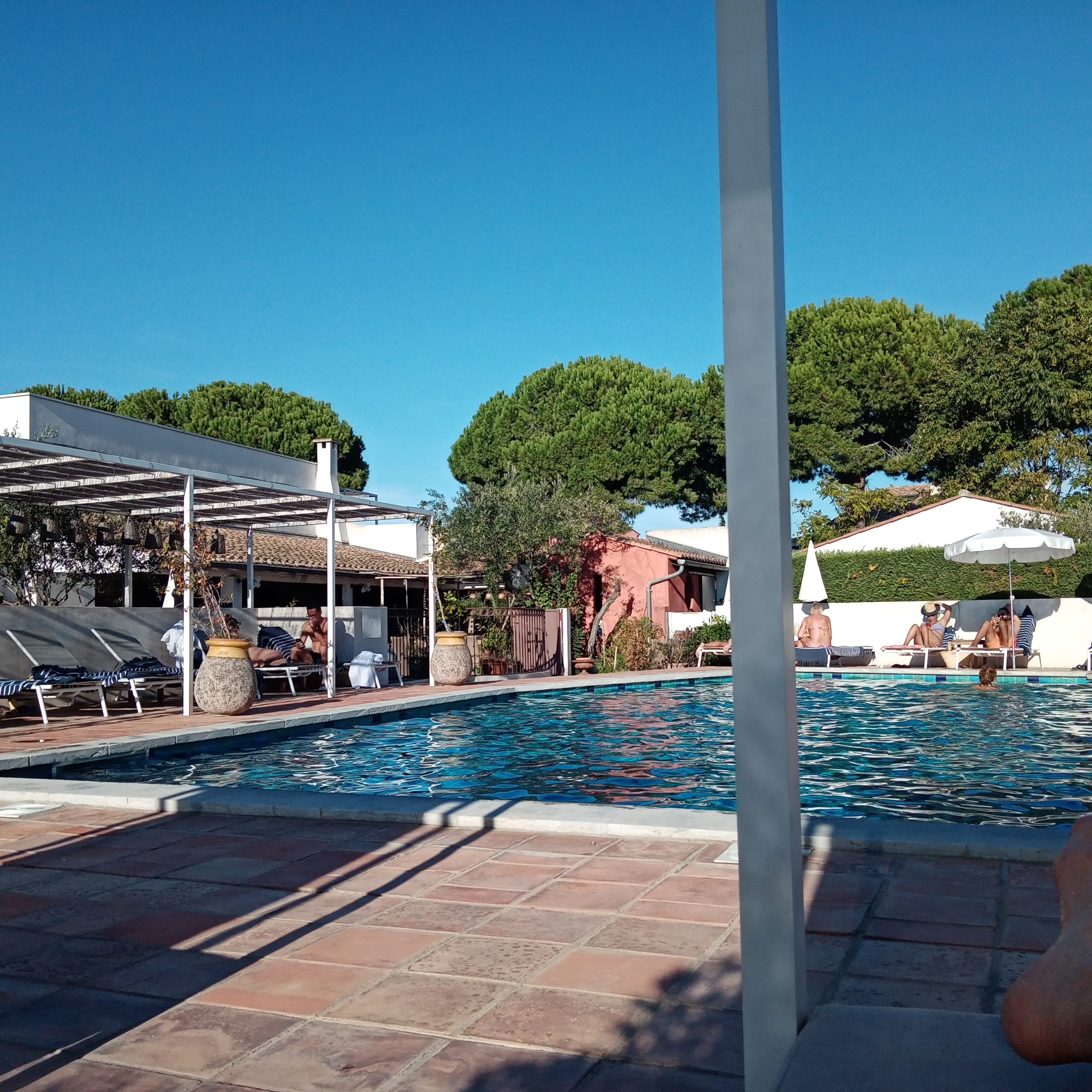 Nous avons réservé 3 nuits pour 2 dans cet hôtel charmant non loin du Port Camargue. Les + : -joli cadre -accueil efficace et sympathique -hôtel de taille humaine -déco des chambres & hôtel soignée -piscine agréable et de bonne taille -roulotte avec massage disponible (supplément) -espace détente reservable avec petite piscine & jacuzzi (supplément). - resto non testé mais qui avait l’air très bon. Les - : -beaucoup d’enfants à la piscine = bruit -chambre donnant un peu les unes sur les autres donc terrasses peu exploitables ‘tranquillement’ (vis a vis présents) - 175€ la nuit (un peu cher à mon goût mais plein saison...)