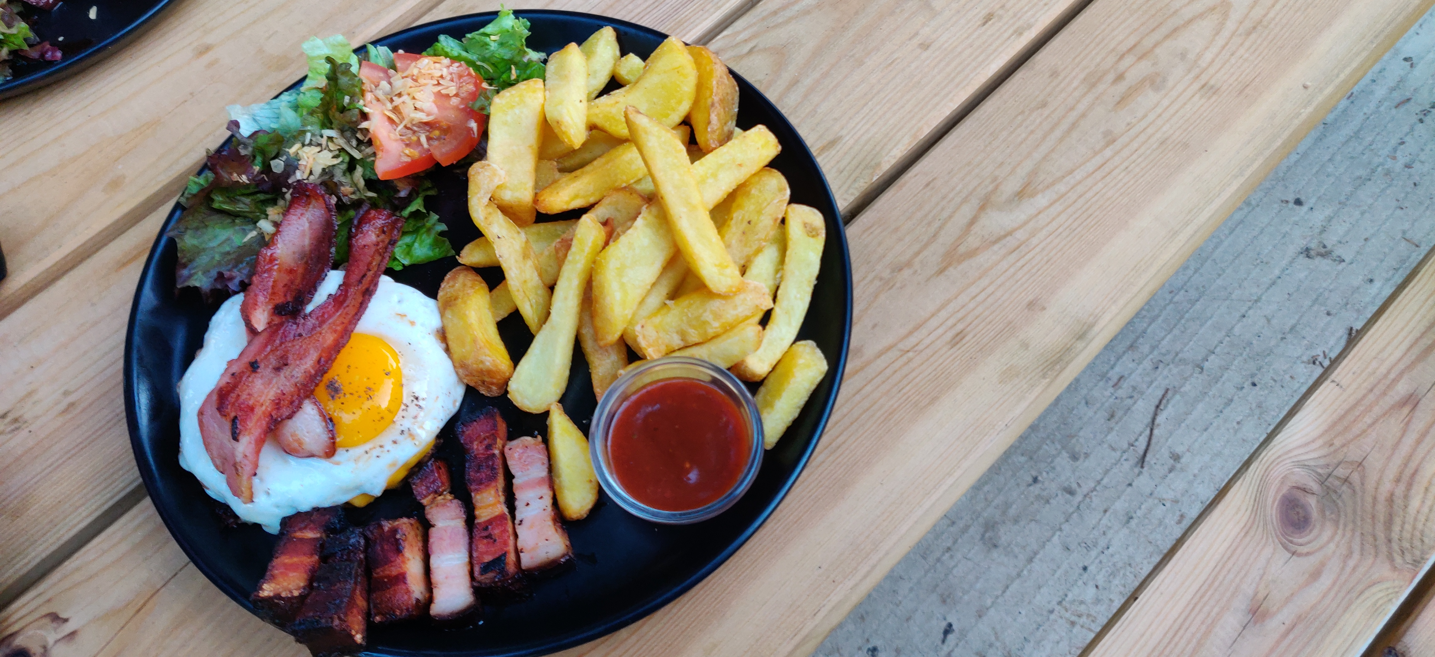 Excellentes ribs , frites et une halte a découvrir . ✌🏻, saldes, bouffes rapide , un peu perdu mais vaut le détour pour les esprits motards .