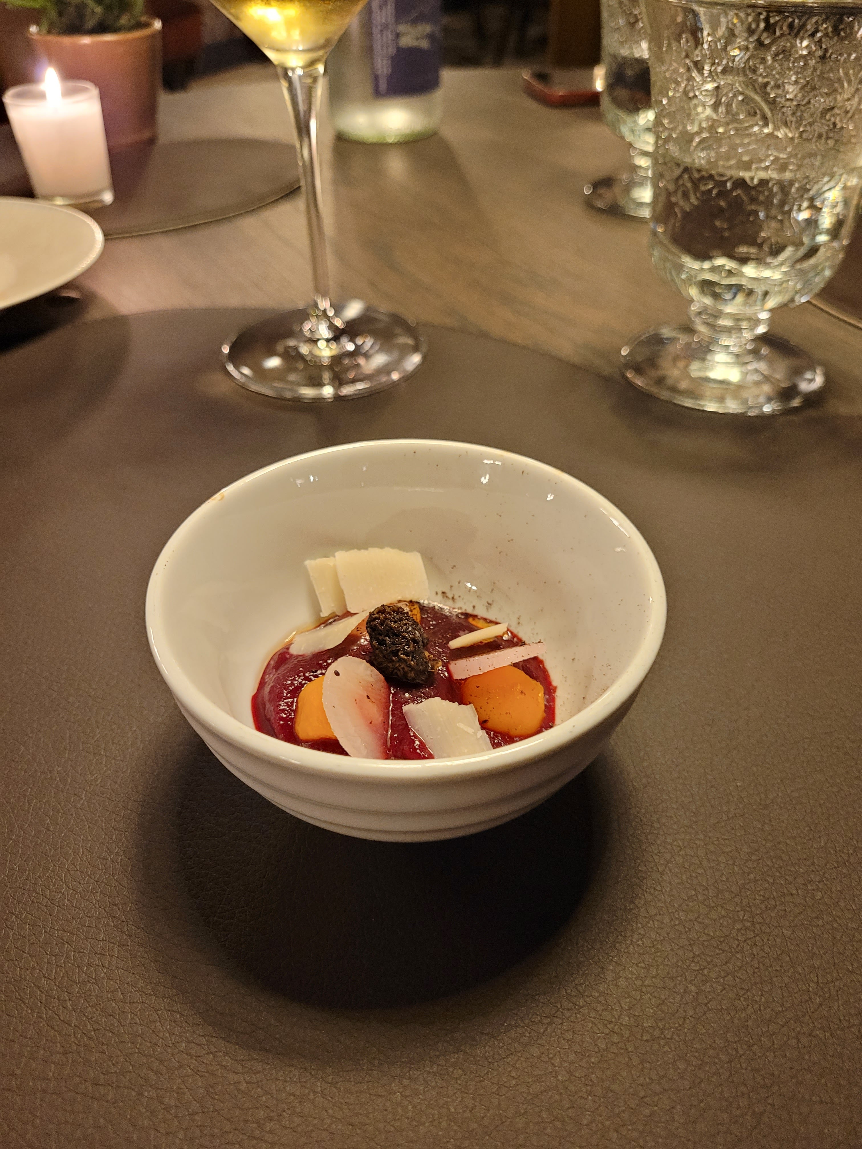 Menu en 5 temps Une cuisine créative et excellente Aussi beau que délicieux Aucune fausse note Merci pour cette belle découverte ! Sans compter un service irréprochable et la décoration du restaurant , tout simplement magnifique ! Nous reviendrons avec grand plaisir !
