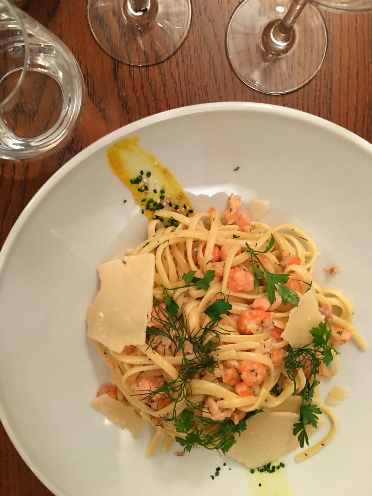 Cadre épuré sympathique de l'espace et de l'intimité entre les tables . Personnels professionnels et chaleureux . Mon risotto était excellent.