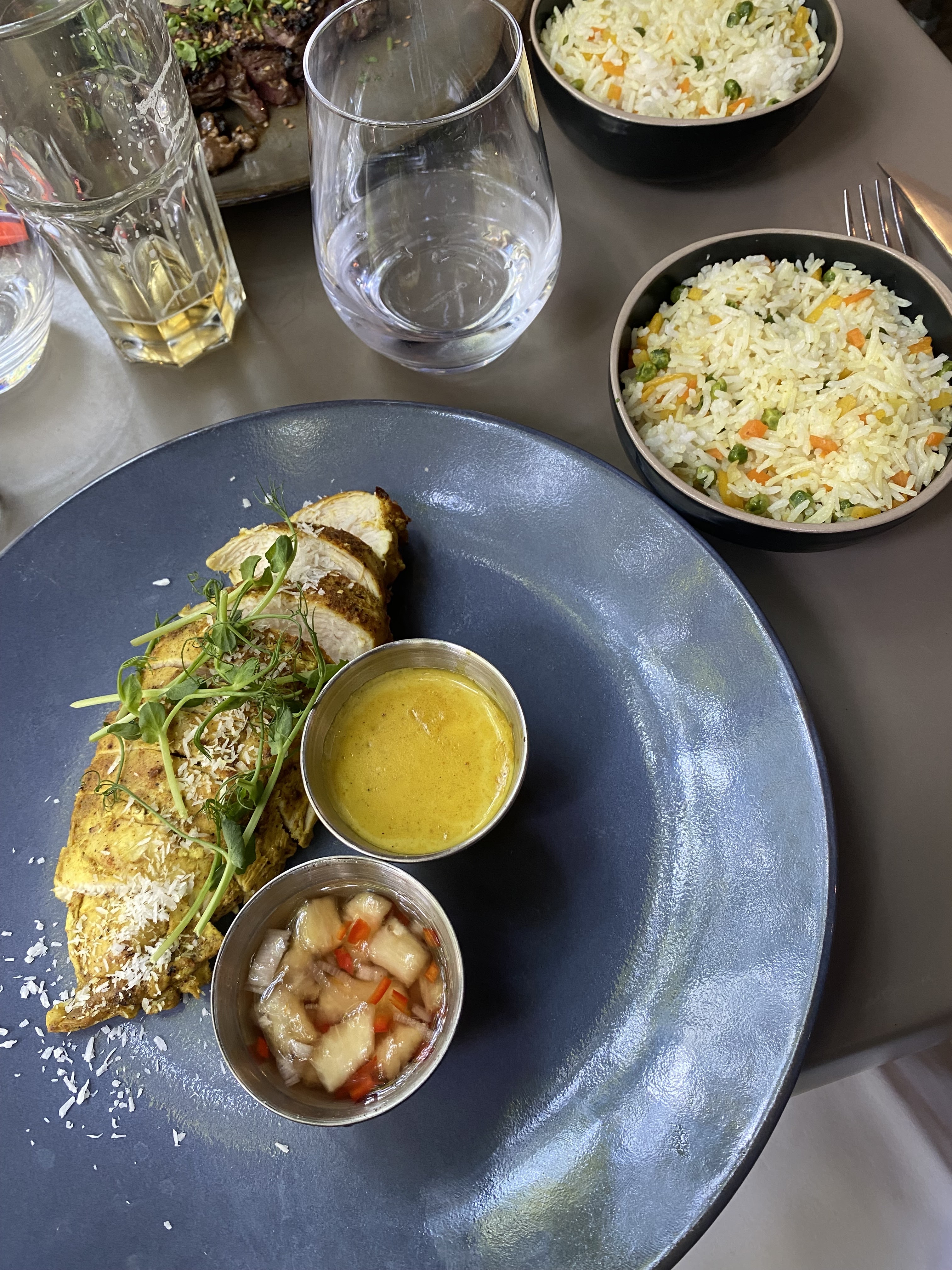 -Bonne musique -Personnel très Agréable et accueillant -Le tigre qui pleure était très bon, un peu moins pour la purée de pomme de terre -Mais le service est assez long.. Chouette expérience en tout cas 😌