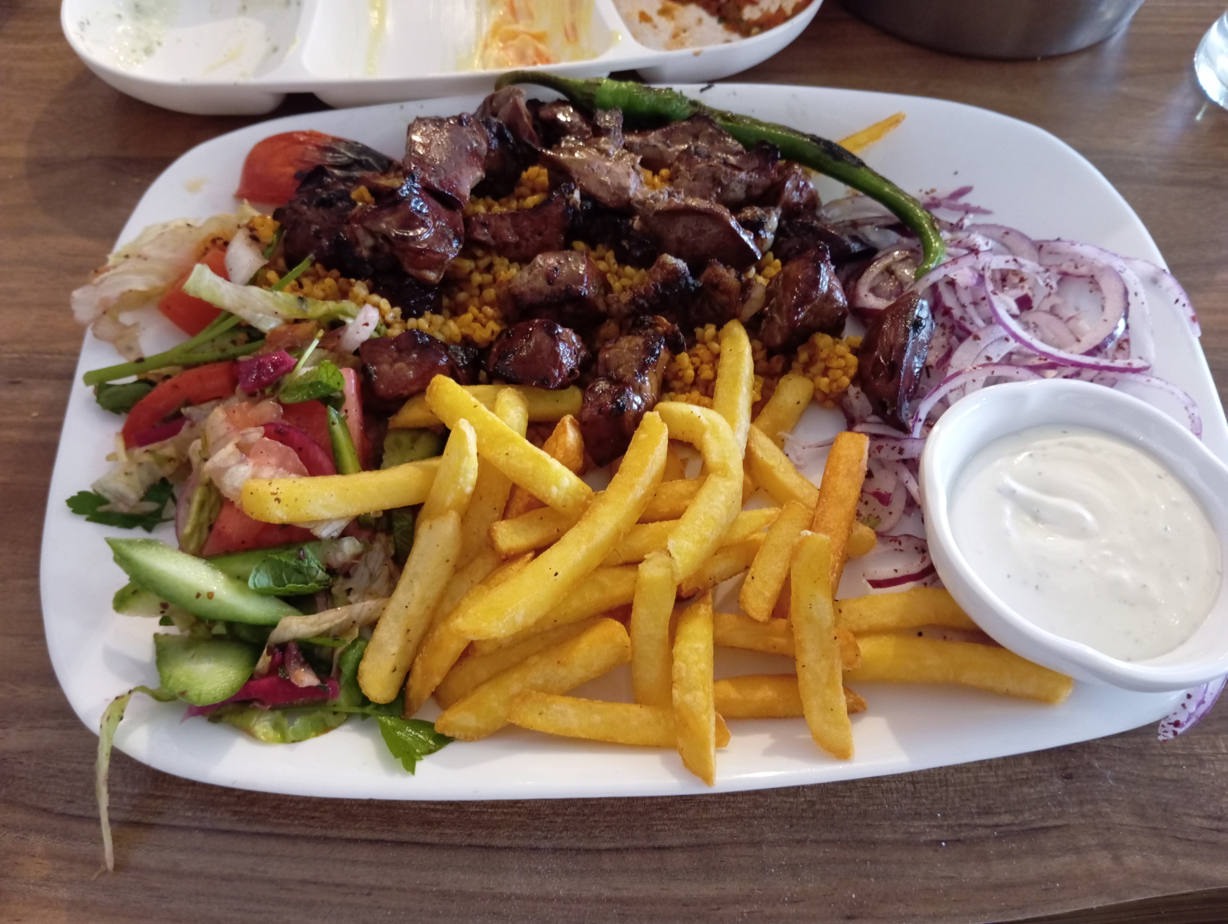 Un bon restaurant pour les grillades qualité top et quantité généreuse Le service est rapide Un bon point café ou thé offert comme en Turquie