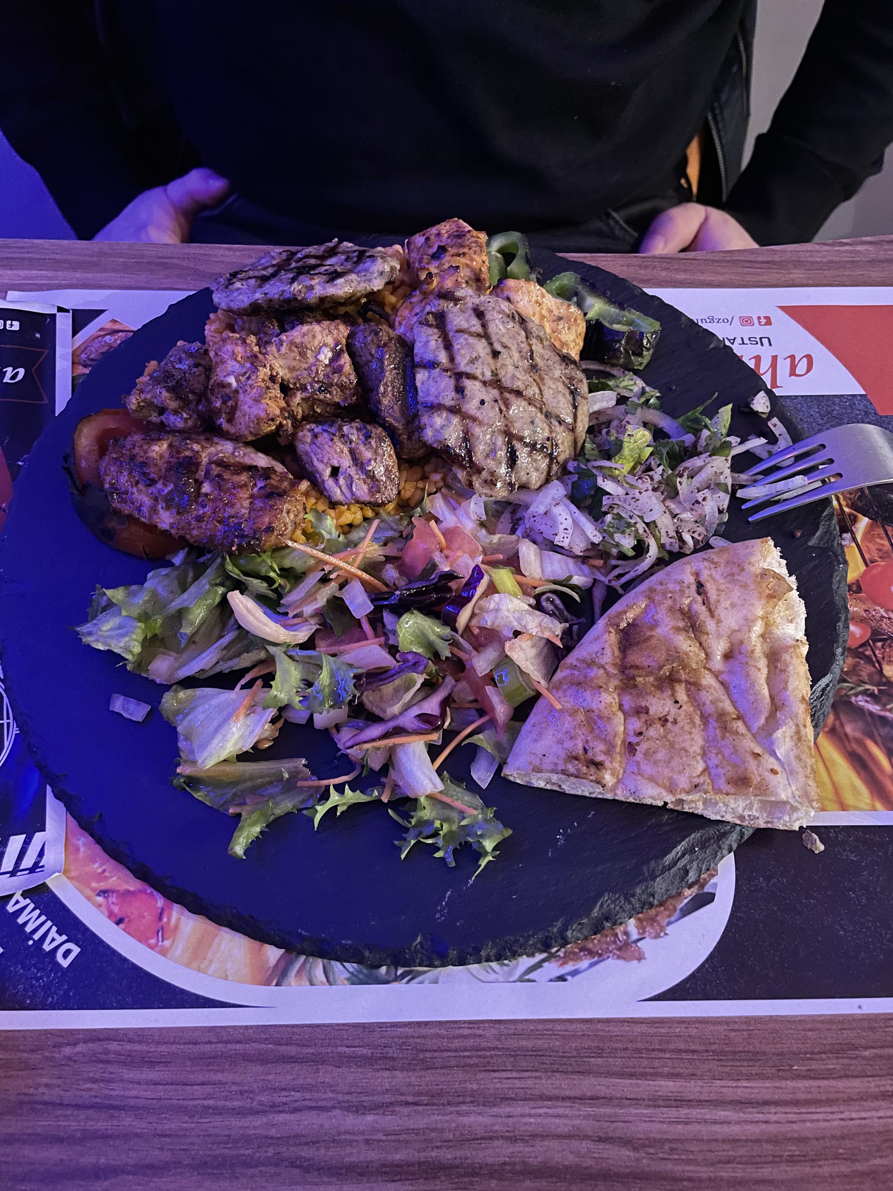 Le şiş kebab était vraiment délicieux ! Endroit propre, sympas, idéal entre famille ! Personnel très gentil, accueillant ! Encore merci AHM-ET USTA !