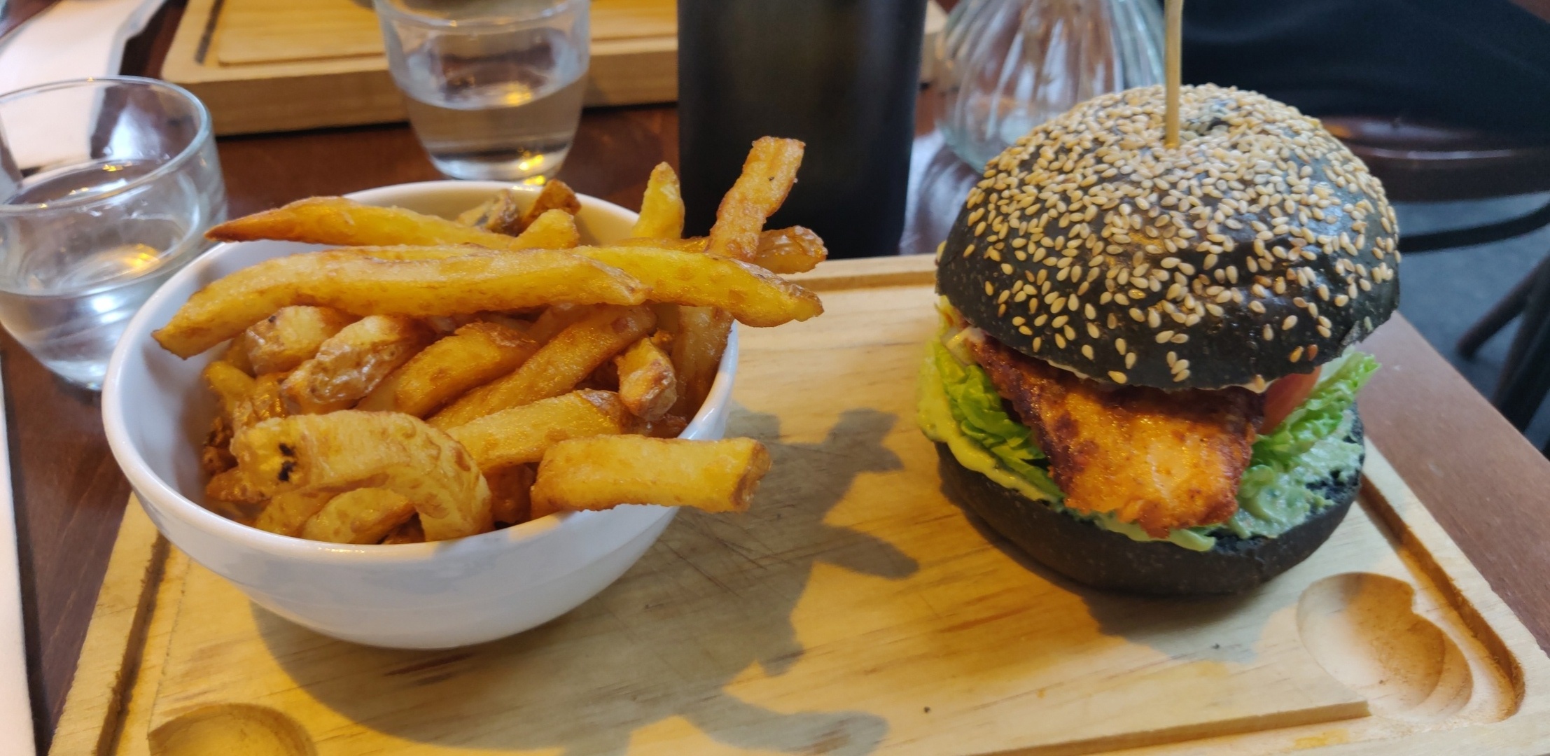 Ce repas a été une agréable surprise. Ayant toujours une appréhension avant de commander quelque chose dans un bar/restaurant, j'ai été plus que conquise par leur burger au saumon. Je recommande grandement