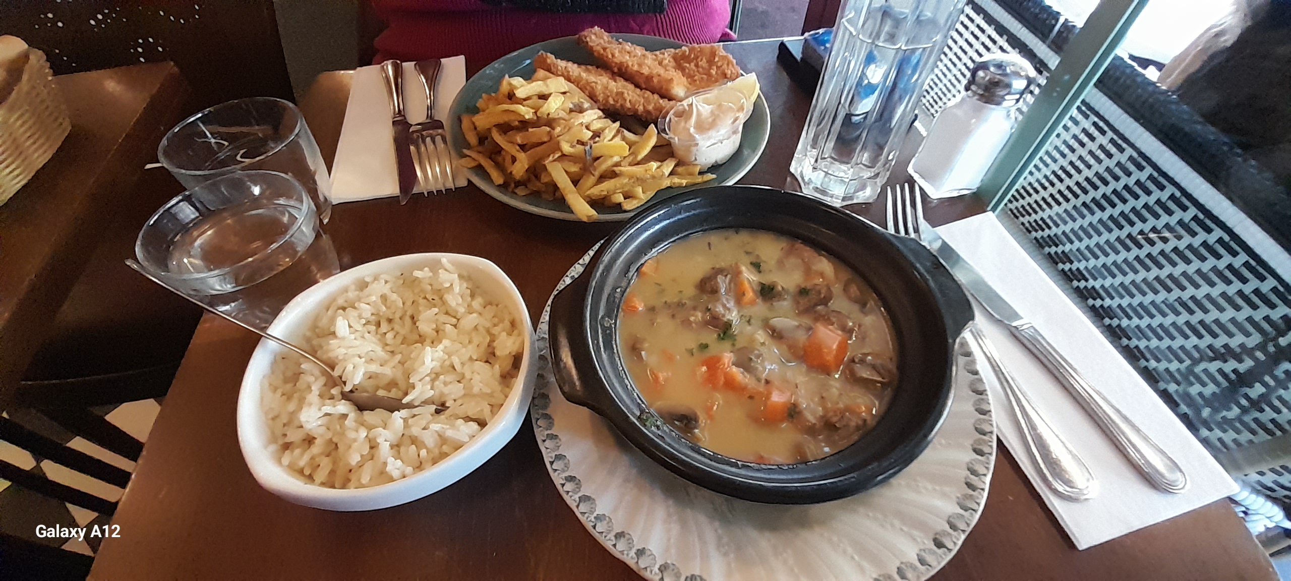 Le cadre, et la serveuse était parfait. Nous avons attendu un bon moment nos plats sont arrivés froids. Pour la note des boissons en plus que nous n avions pas prises ...