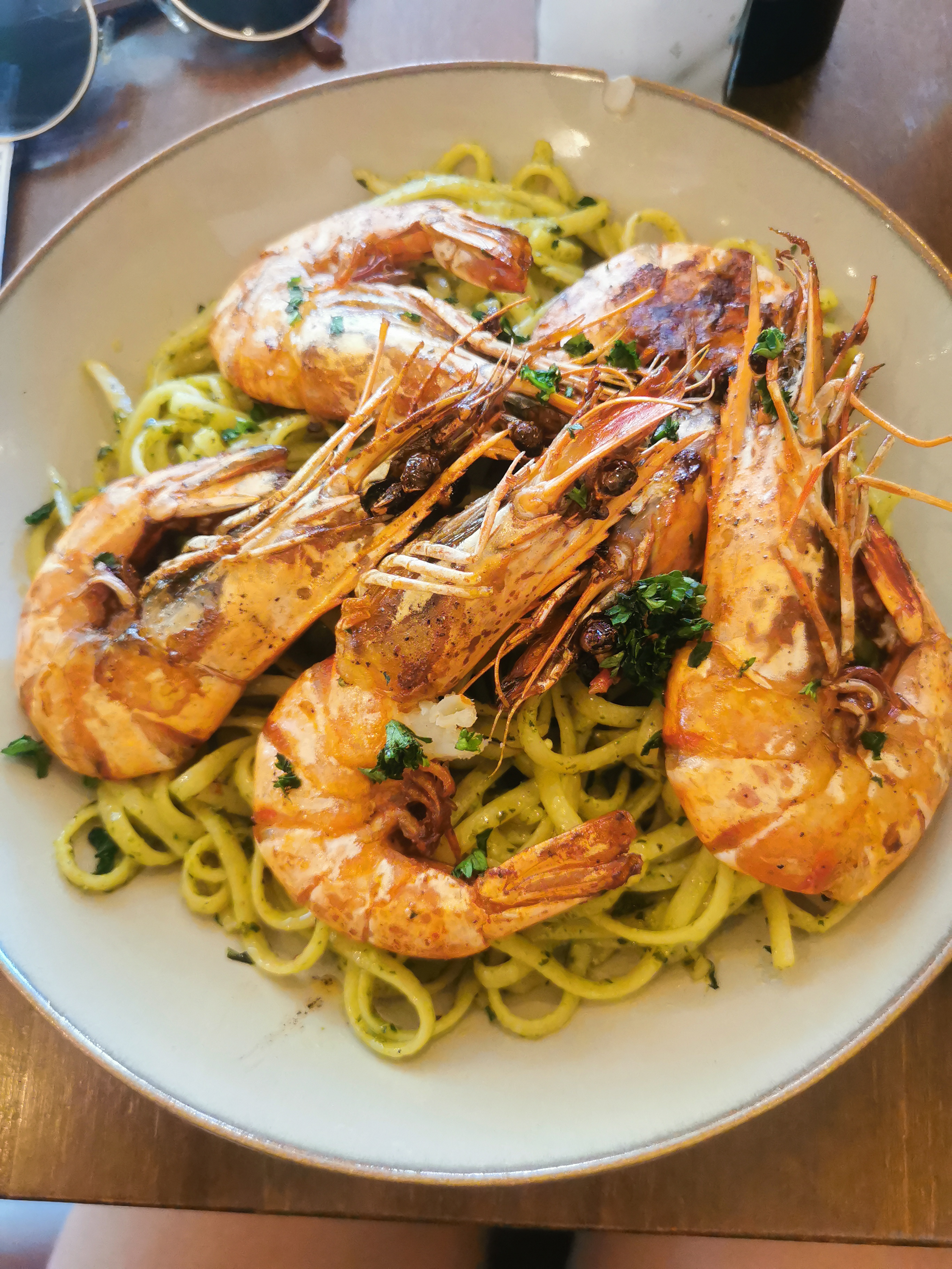 Très joli restaurant, bon accueil j'ai commandé une assiette de linguines aux gambas, l'assiette était généreuse mais fade, les gambas sèches un peu déçue sur ce plat.