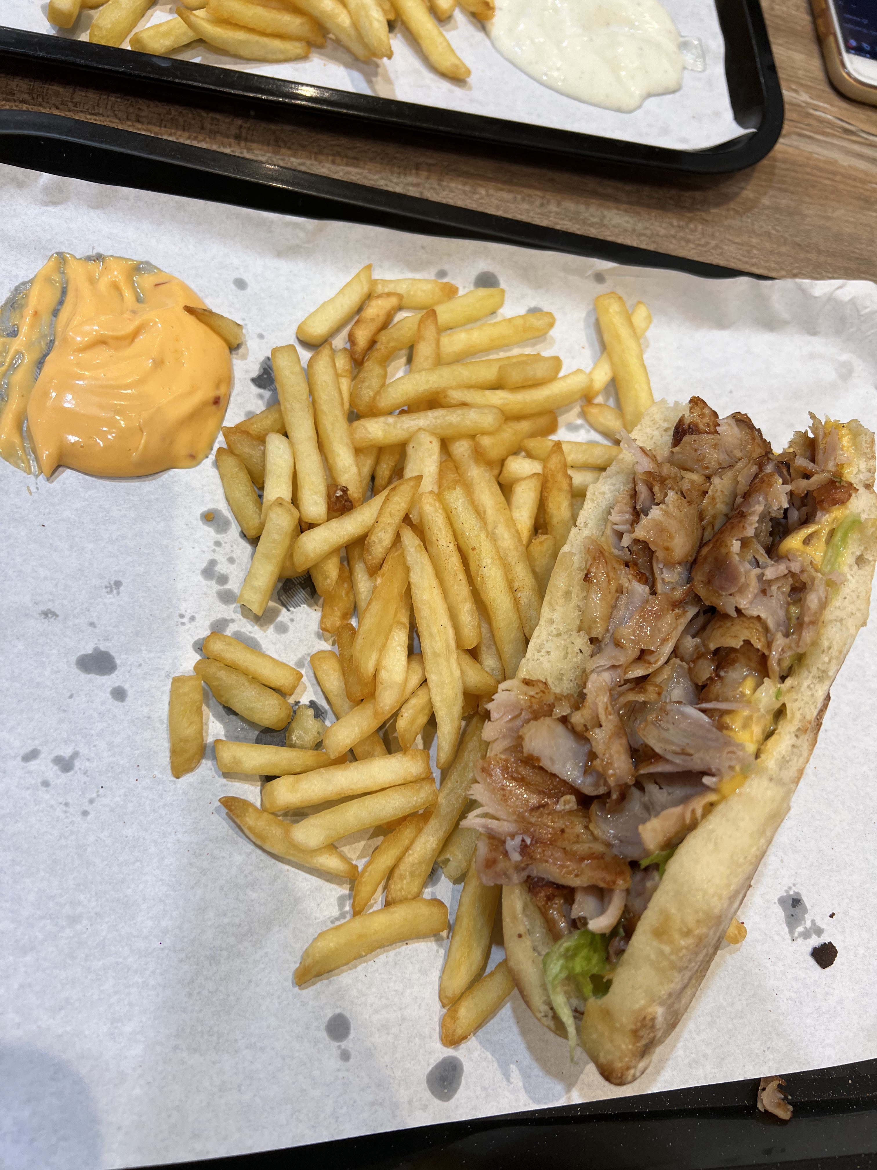nous avons eu une frite et un kebab de poulet c'était délicieux.