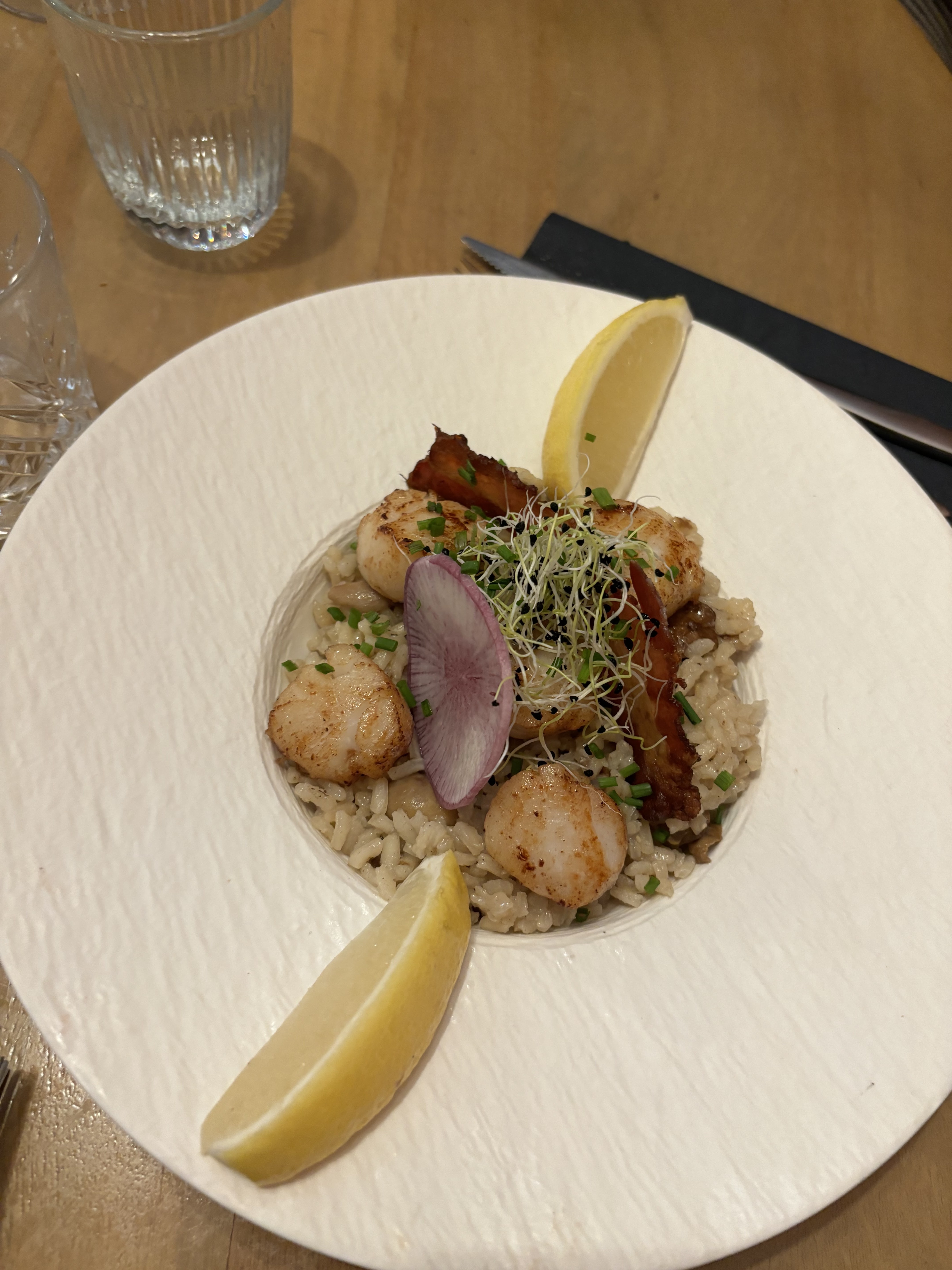 Magnifique deco 🤩 très sympa de voir les cuisiniers préparaient nos plats 👍assiettes magnifiques et excellentes . Je languis d y retourner pour goûter le reste 😃 les serveuses sont très professionnelles , souriante , agréable .. vraiment top . On s est régalée pour un anniversaire .