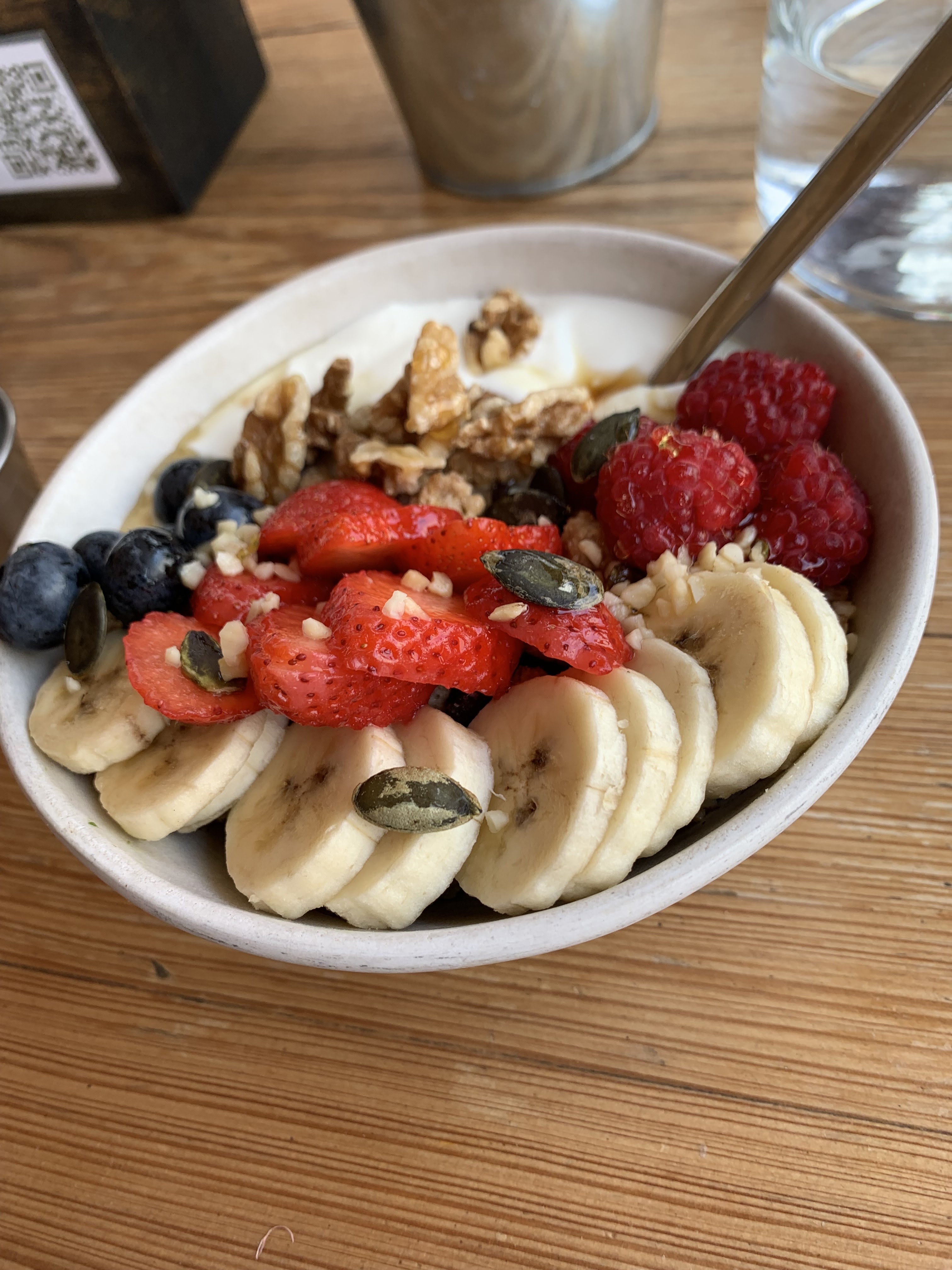La nourriture totalement moyenne, bol de granola à base de produits de supermarché. Des trucs sympathiques, un endroit agréable.