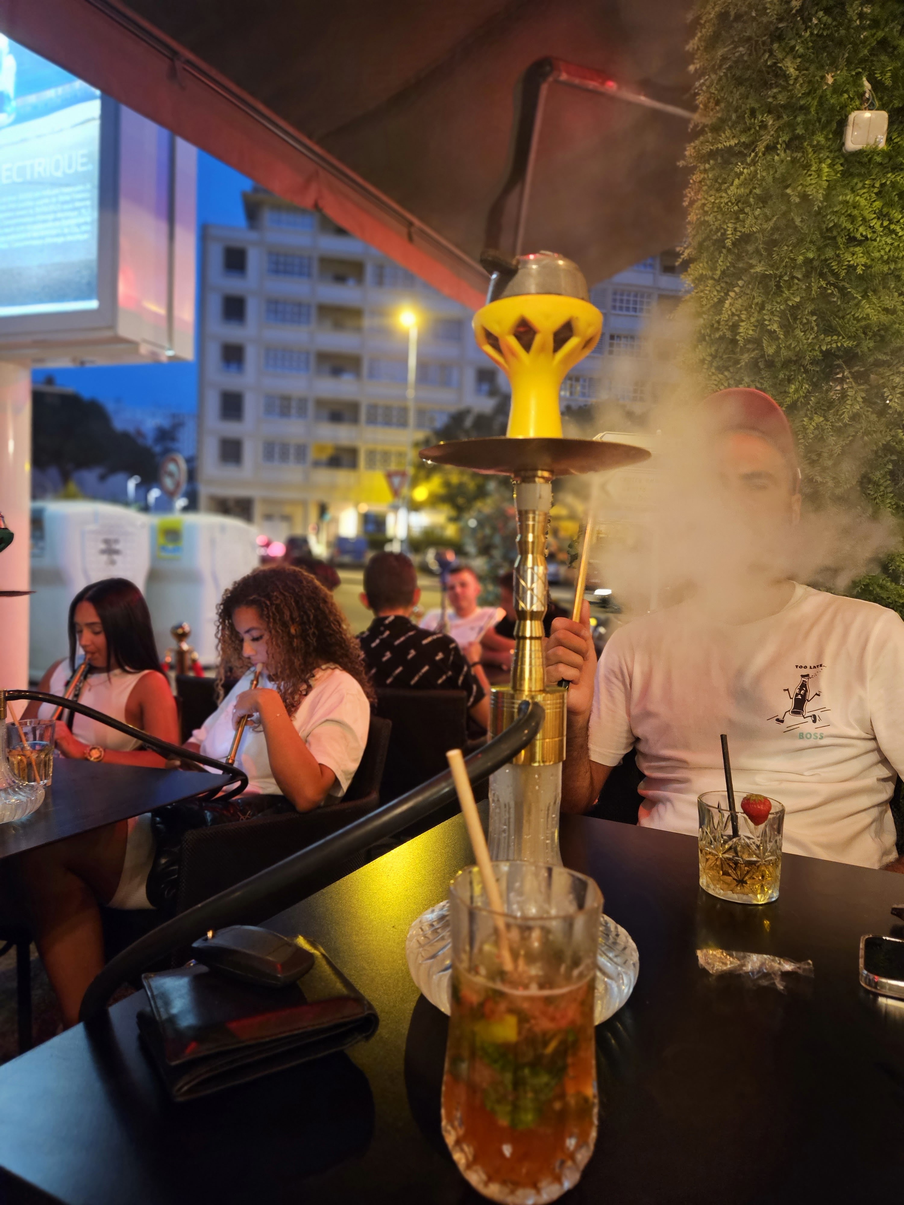 Le Concept avait l'air pas mal. Sachez que la restauration es un métier. Le sourire ne suffit pas malheureusement. Equipe avec aucune expérience dommage. Prise de commande bien trop tard . Les verres salent étant du métier je vous conseille de prendre un plateau pour servir un client. On à voulu manger dans la salle a chicha , le sol sale ainsi que les chaises. Le coktail il faut savoir les faire et pas besoin d'être plusieurs salariés pour si peu de travail. Du coup on a pas même mangé on a fuis désolé. Une ORGANISATION est a reprendre Courage a vous .