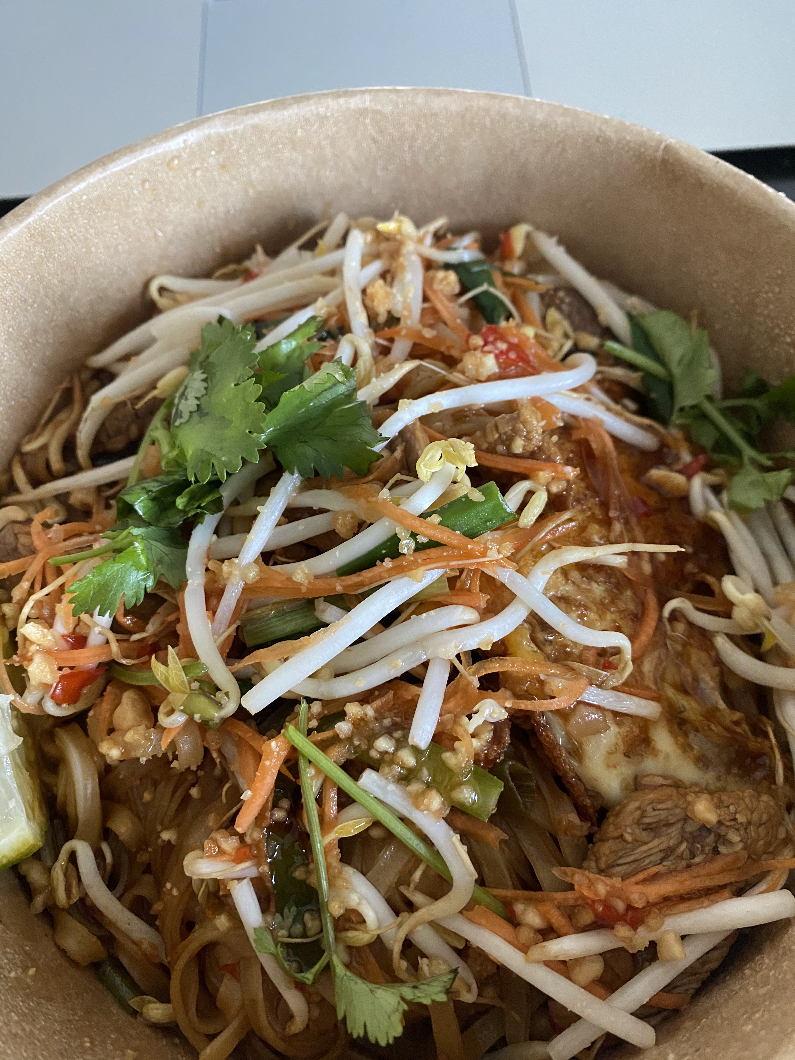 copieux, pad thai facile à manger et à emporter grâce à la box. rapport qualité prix imbattable, garanti de plus avoir faim après