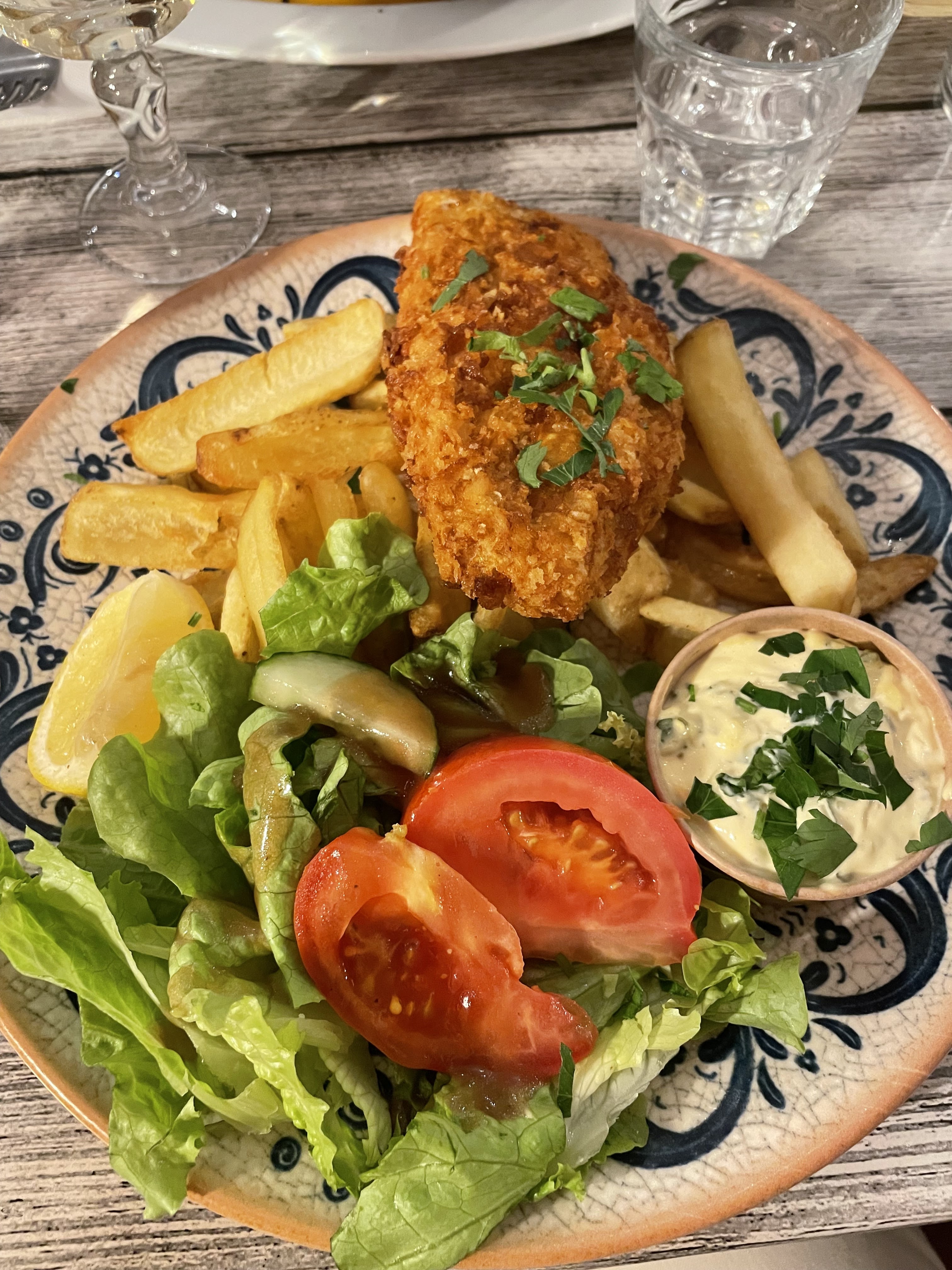 Restaurant super sympa et cosy. Même si je n'aime pas le beurre, la nourriture était très délicieuse. L'entrée au saumon était la meilleure avec du pain bien grillé avec de l'huile d'olive et le poulet frit était également bien frit et croustillant. Même le dessert était parfait. Ils ont des glaces et je ne regrette pas chaque euro payé. Ils ont leur propre recette pour empiler la glace pour la rendre meilleure. J'ai vraiment envie d'y retourner pour un autre repas avec boisson !