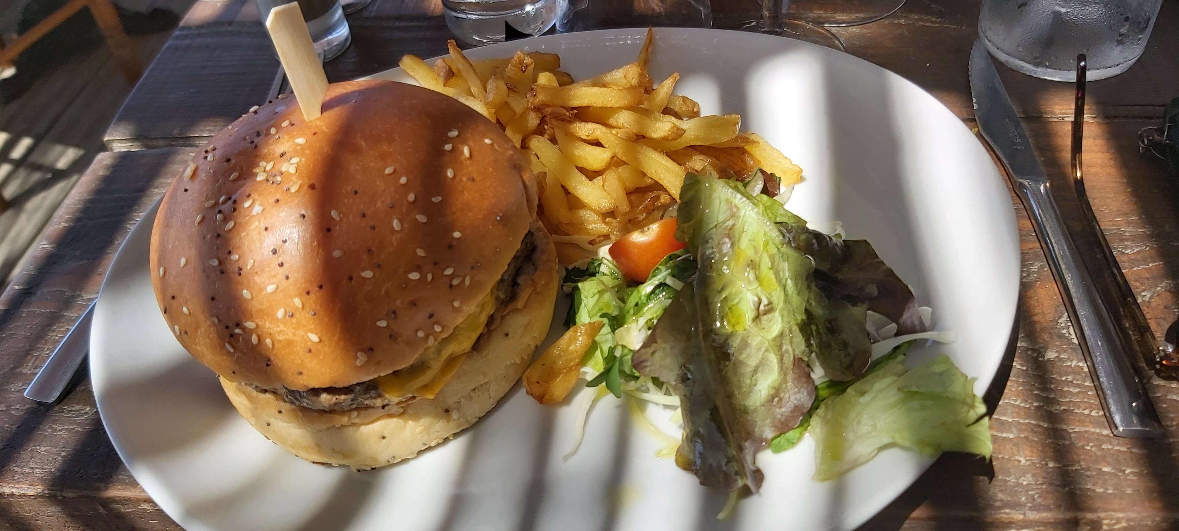 Le burger est bon et vu les autres plats sur les tables, tout y est. Le cadre est aussi très sympathique. Par contre le service est catastrophique : le serveur devait être fatigué de la période estivale, parcquil est même pas capable de souhaiter bonne appétit quand il sert les plats..