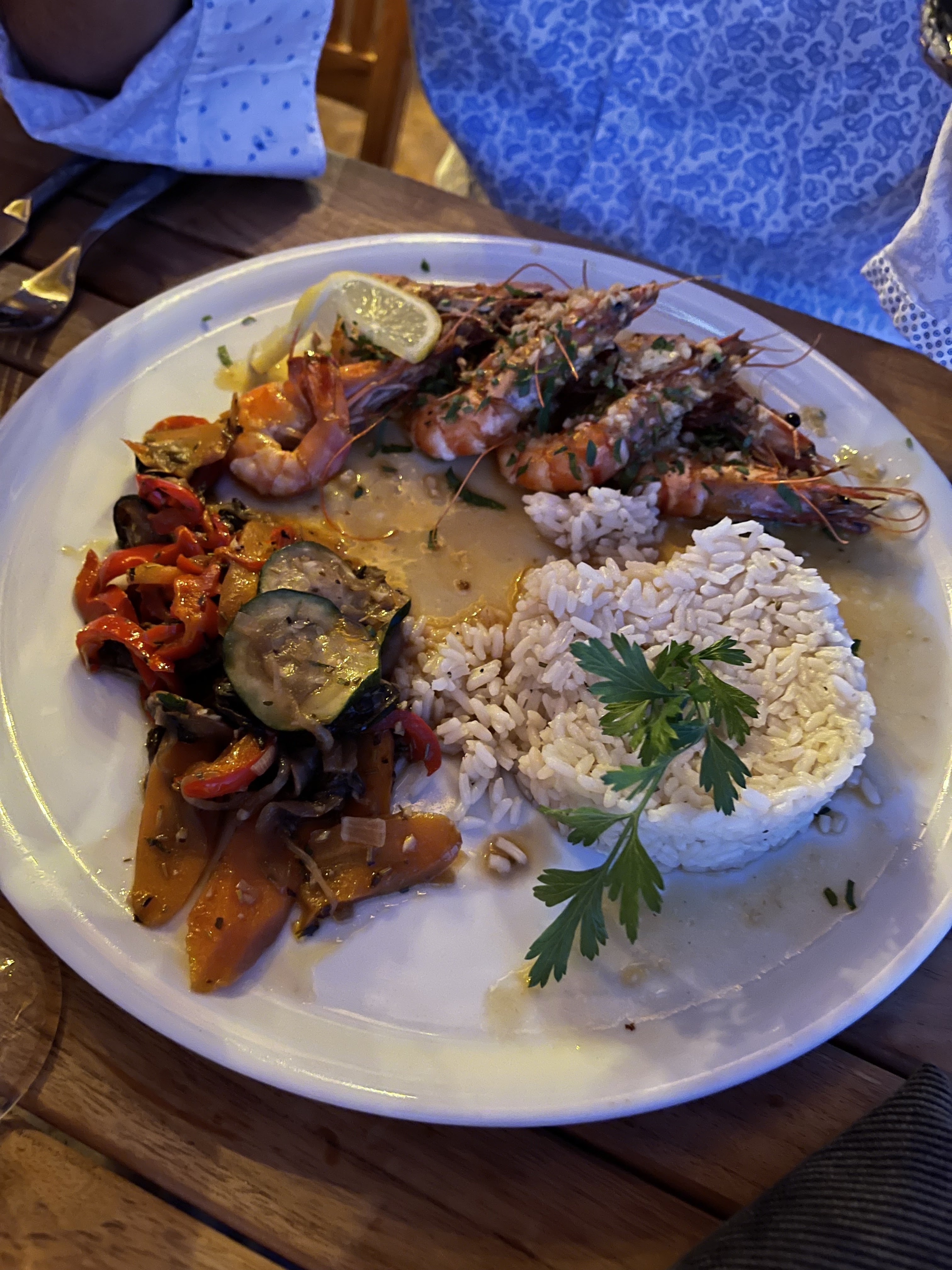 Quelle belle soirée à cette charmante paillote .. la cuisine est délicieuse et l’assiette de la mer très copieuse !