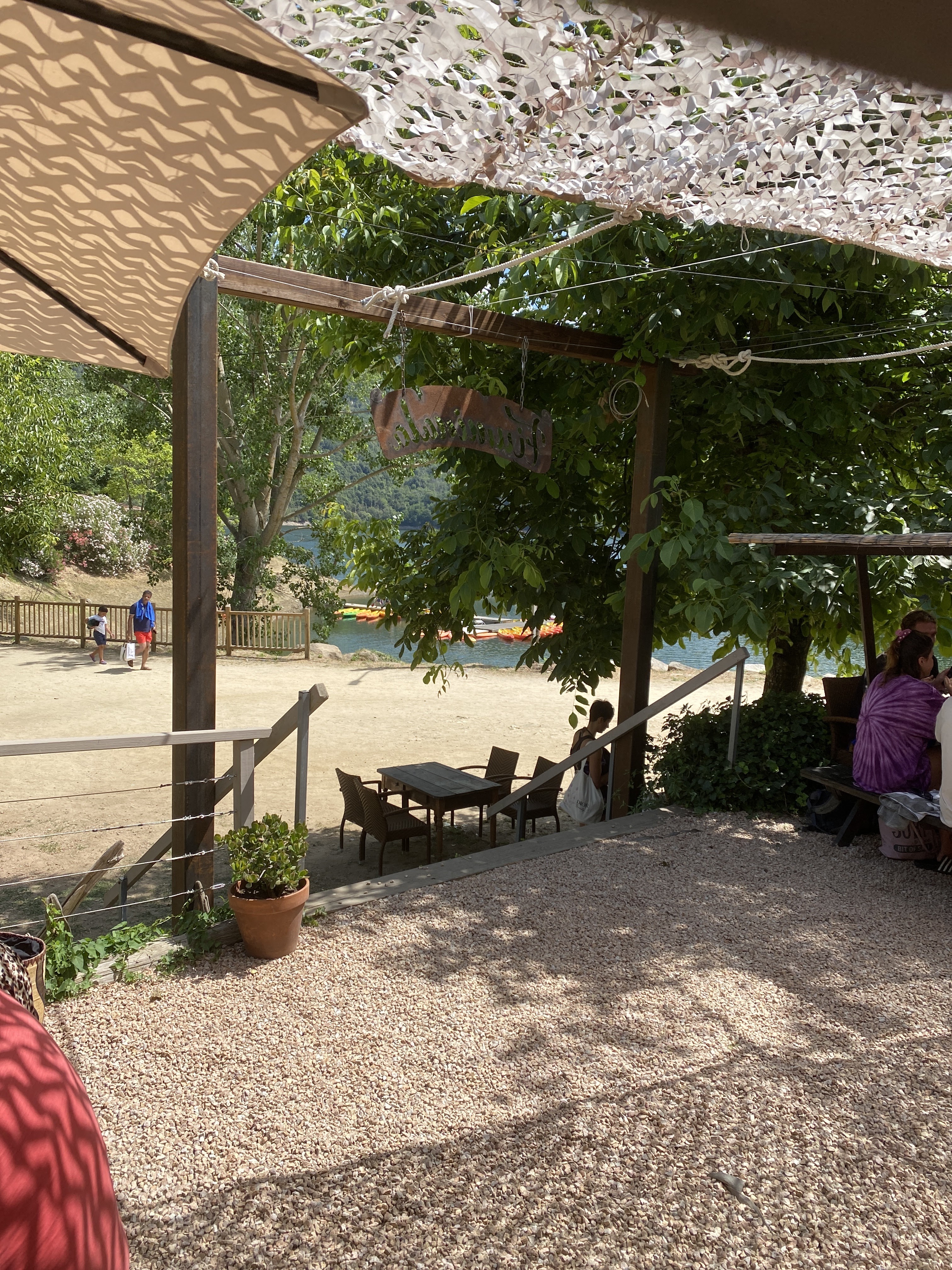 Déjeuner dans cette sympathique paillote avec plat du jour excellent Cadre agréable Lac calme pour faire pédalo en cette saison non encore chargée Route sinueuse pour y accéder mais ça vaut le détour