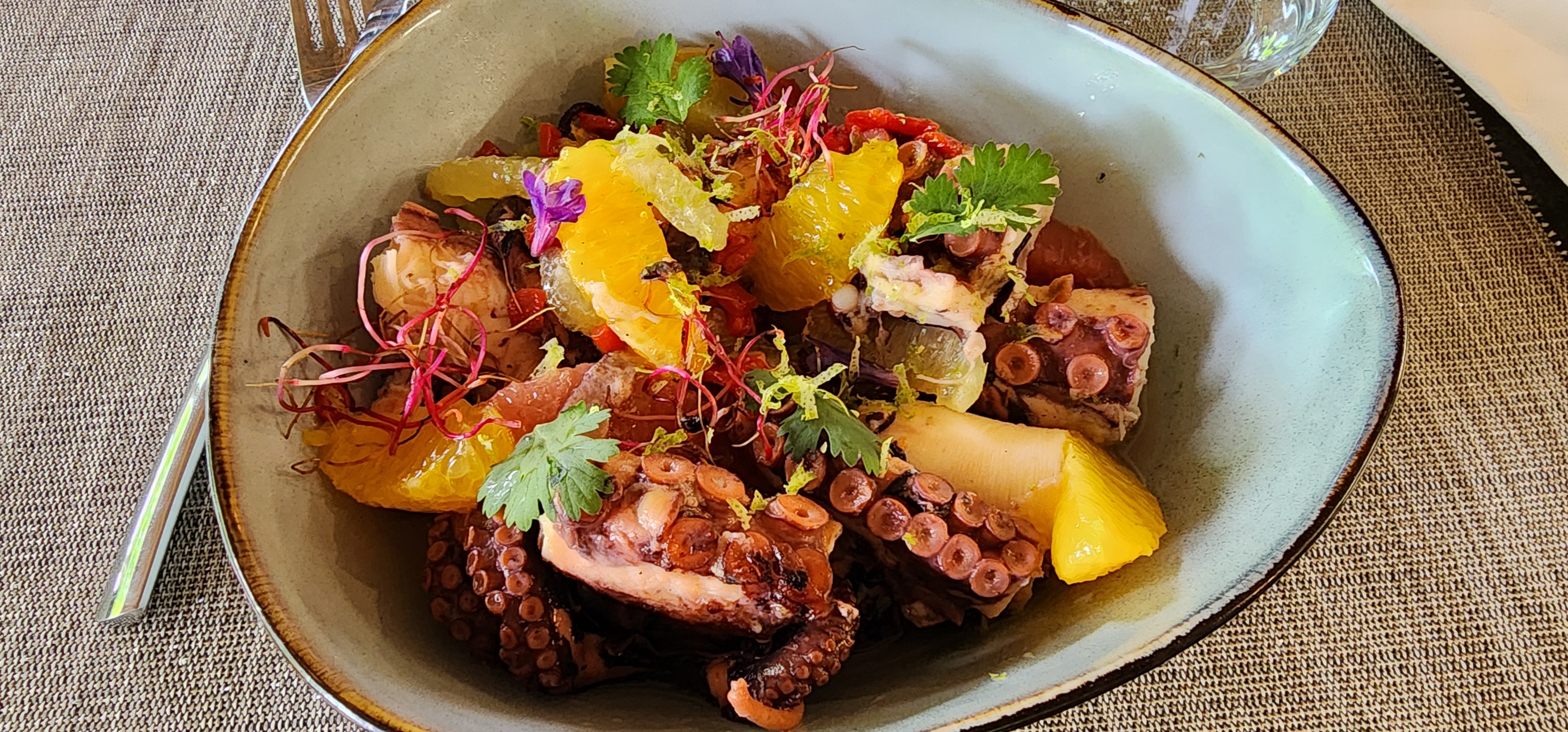 Saveurs délicates ,belles assiettes,service attentionné belle surprise ! Un carpaccio de poulpe délicieux et un saint Germain divin