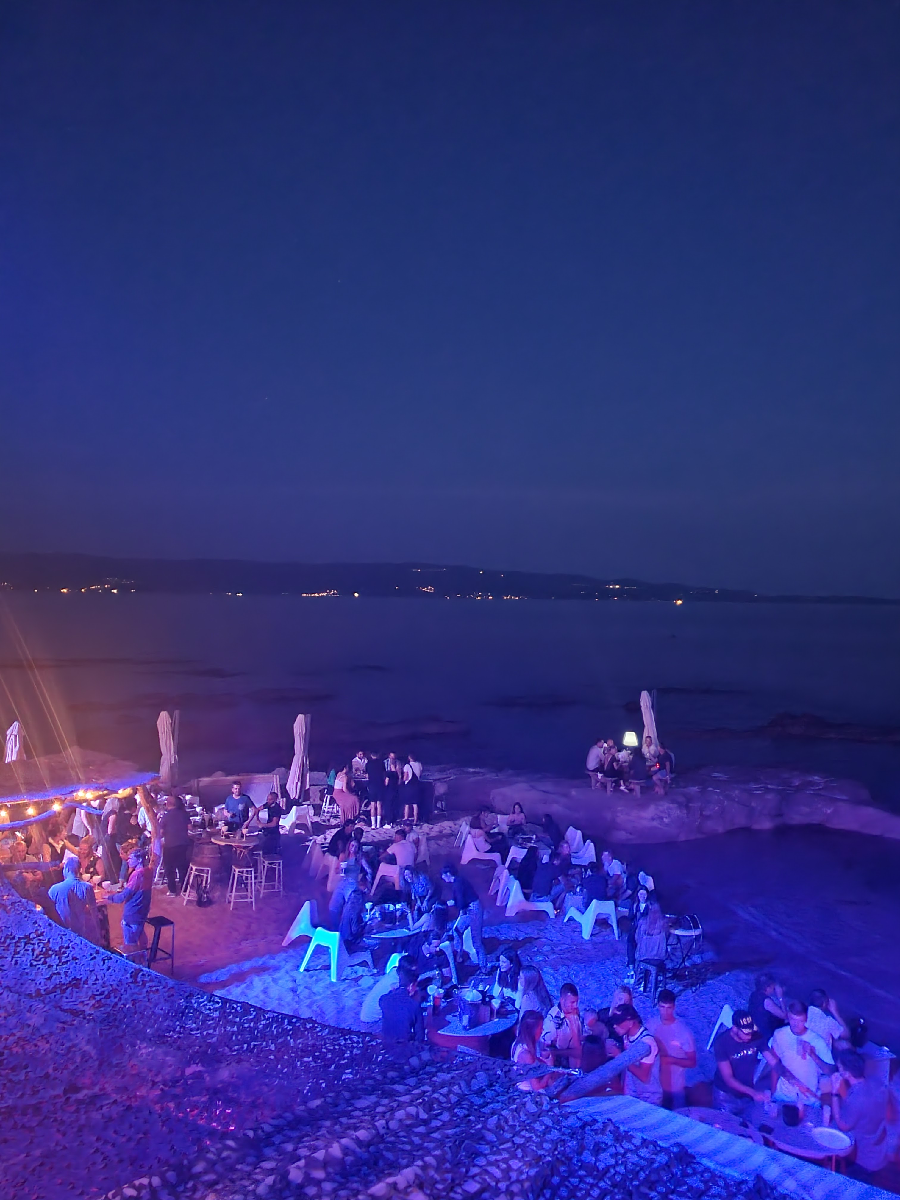 Le soir ça fait boite de nuit pieds dans l’eau. Les filles ça sert à rien de mettre les talons, mieux vaut venir en tongs! Samedi soir soirée « années 80 », faut aimer... Bonne ambiance, branché. Ici le Covid on sait pas ce que c’est.