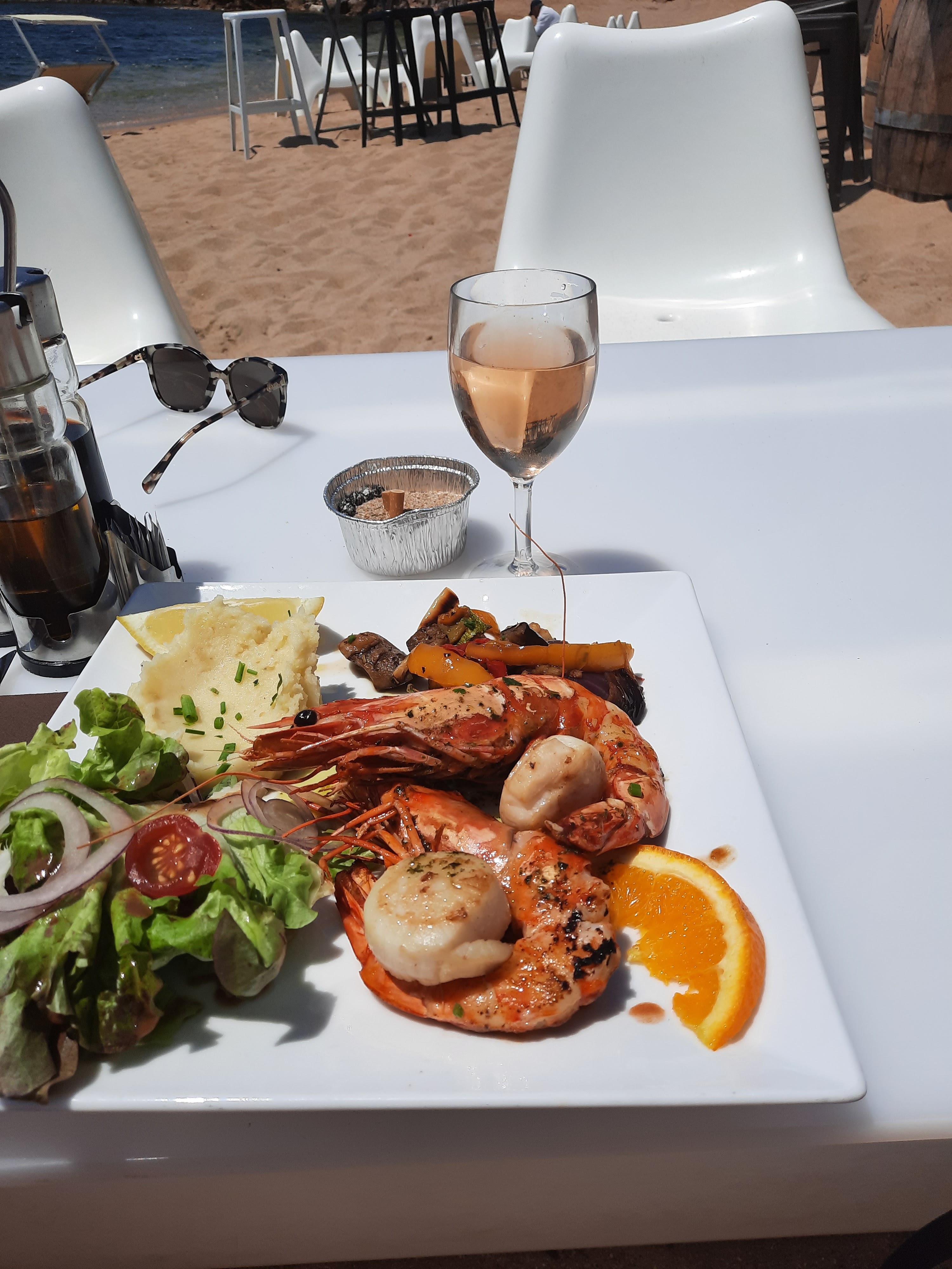 Pause déjeuner tardive le midi, les pieds dans le sable, serveurs très agréables et efficaces. Les plats sont généreux et de bonne qualité !