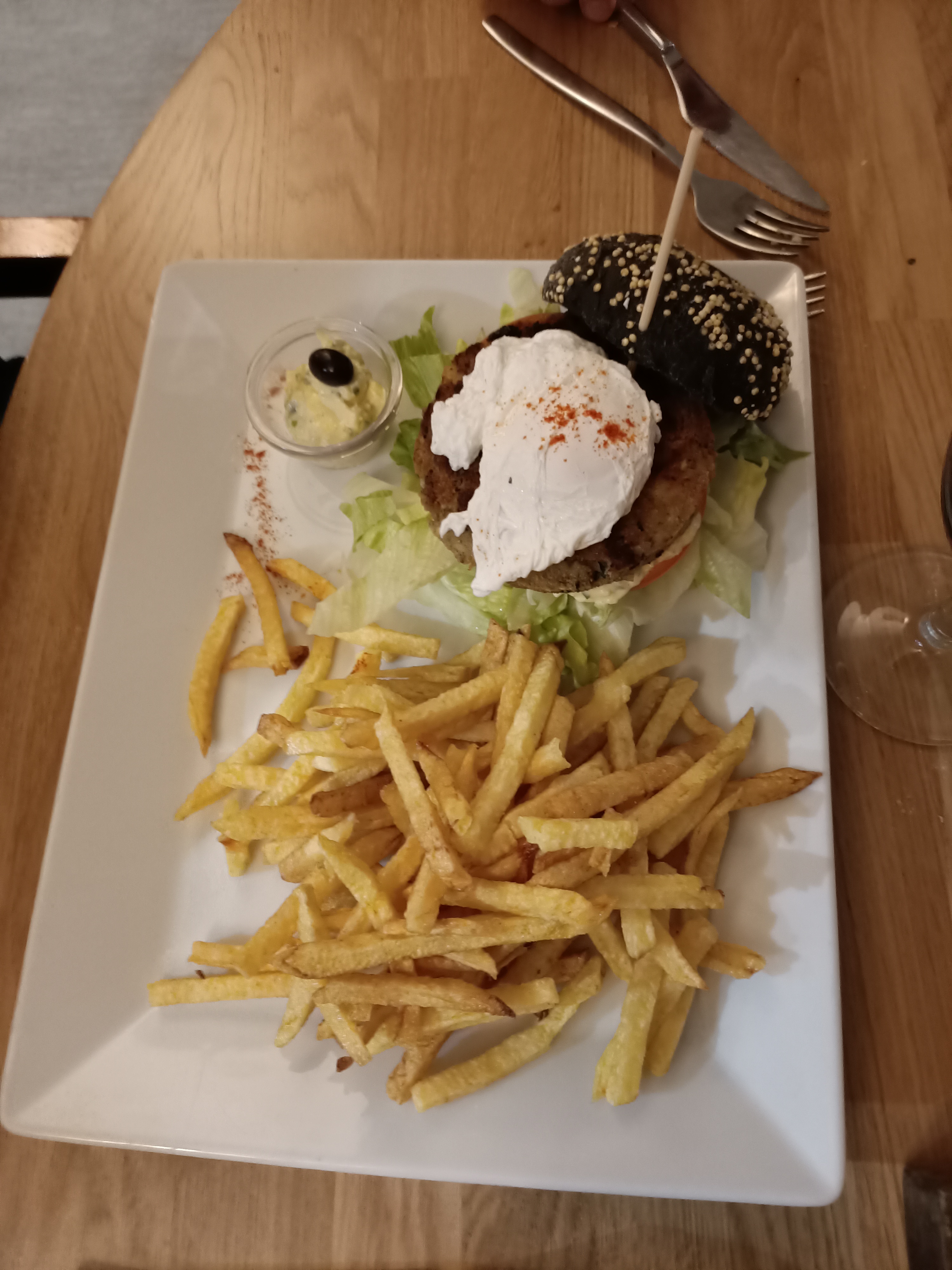Le burger à la morue avec l'œuf poché...excellent! 😍 arroz doce et pastel de nata pour le café gourmand histoire de bien finir ce bon repas.