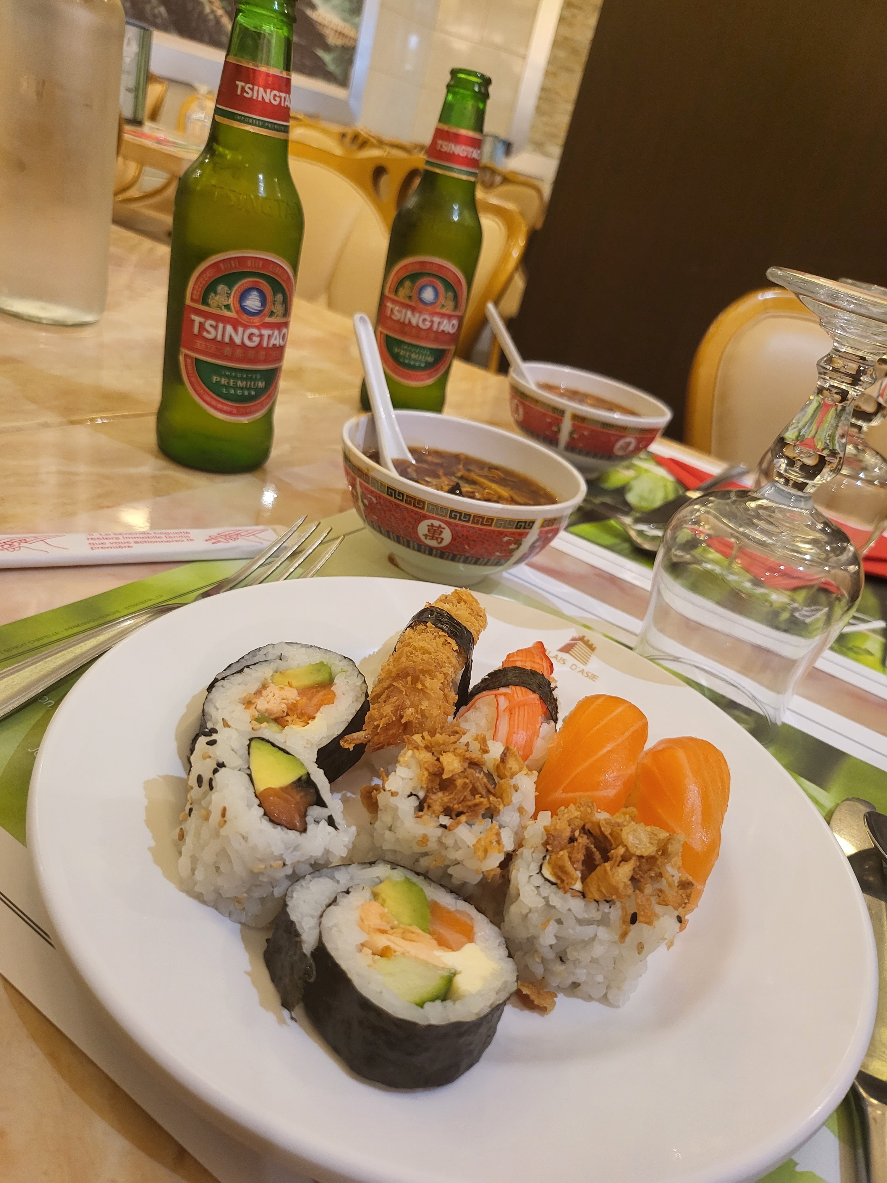 Pour un restaurant à volonté asiatique la nourriture est plutôt bonne. Le wok est un plus par contre niveau sympathie et gentillesse des serveurs...passez tout droit ! Serveuse très antipathique, elle nous voyait avec les bras levés pour faire une demande et passait tout droit sans s'arrêter. Pour deux fois mon mari s'est levé pour aller chercher des boissons par lui même et eux lui renvoyait à table car il fallait demander a la soit disant serveuse. Enfin bref, une cata. Je reviendrai pas.