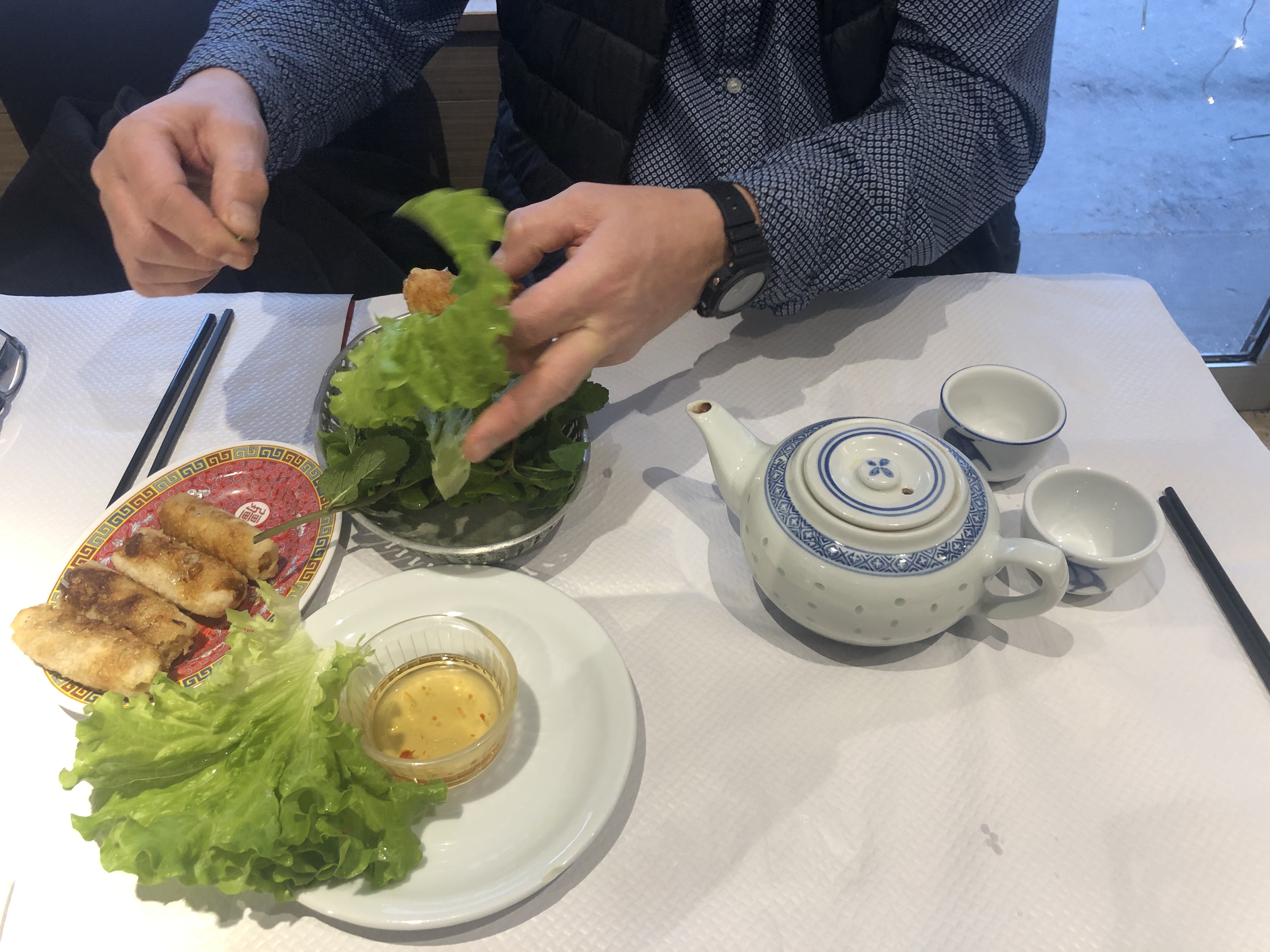 Déjeuner dans ce restaurant du 13ème avec ma famille. Il y avait de la place malgré l'heure tardive. Nous avons eu une table tout de suite mais elle n'était pas dressée. Nous avons dû réclamer les couverts plusieurs fois toit comme le menu. Nous avons pu commander et les plats sont bons. En entrée nous avons pris - des crêpes vapeur aux crevettes une de mes entrées préférées - des raviolis vietnamiens En plats : - des pâtes de riz sauté au bœuf un peu fade - une soupe de pâtes de riz avec boulettes et viande de bœuf - un bœuf au basilic Bon rapport qualité prix mais le service est à revoir c'est dommage car l'ensemble des plats sont bons. A voir si nous tenterons à nouveau l'expérience lors de notre prochaine visite dans le 13ème