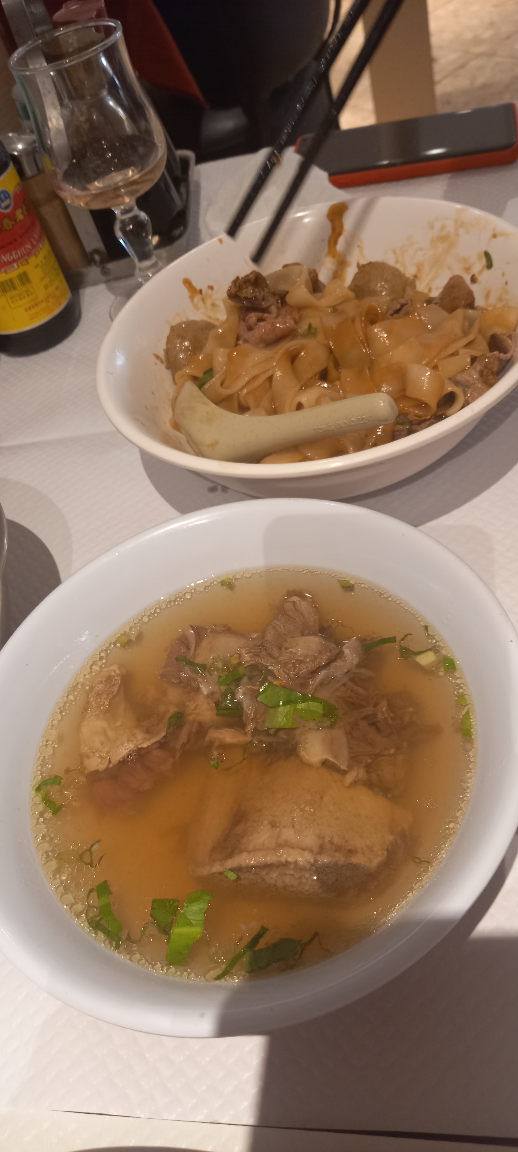 Je recommande la soupe maison aux tripes ainsi que les pâtes de riz au bœufs sauté + thé jasmin chaud