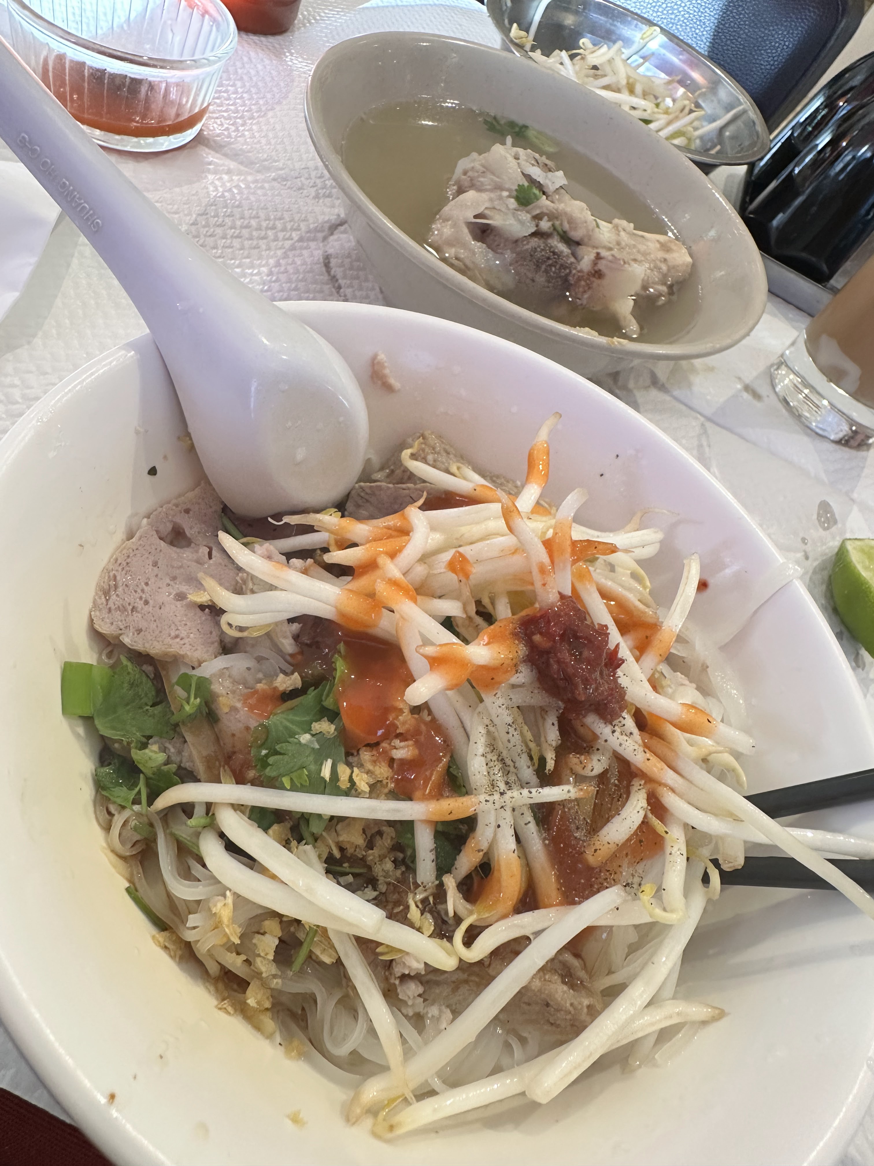 C'est le lieu pour manger une bonne soupe claire très tot le matin à l'asiatique, parfumé et revigorant. Surtout apres une nuit fatiguante.