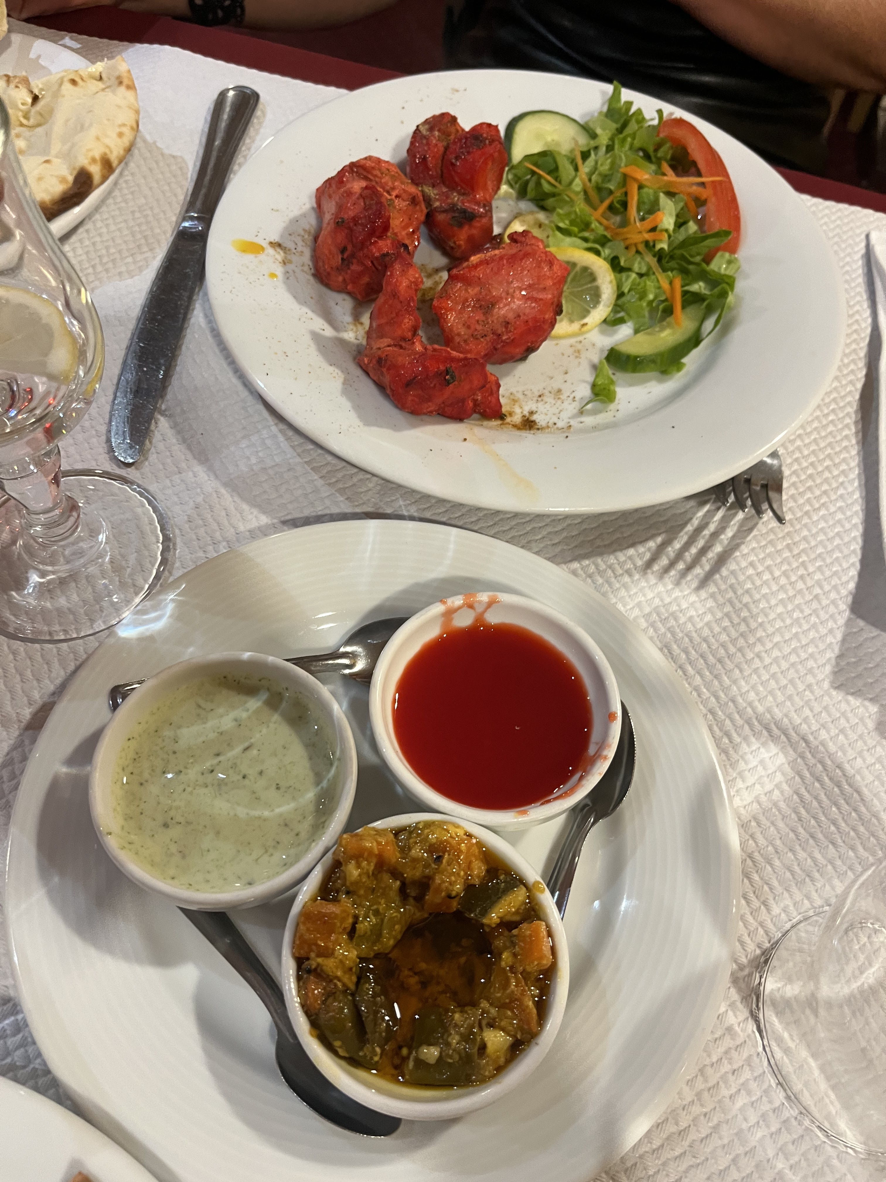 Je suis revenu dans ce restaurant qui m'avais plutôt bien accueilli la première fois au mois d'août. Cependant cette fois-ci n'a pas été la même... Laisser moi vous dire qu'avec du recul, les viandes en sauces comme le poulet tika, le poulet masala et les autres sont en majeure partie un tas de sauce pour de très petits morceaux de viandes qui ce battent en duel. Les samousas au bœuf sont blindé de pomme de terre, les légumes sont autres que des frites qui on était refrit avec de la chapelure et pour Le poulet rôti, il est rosé d'un colorant... N'est-ce pas pour caché la proliferation de bactérie 🤔. Car la première fois que j'y suis aller je l'est très mal digéré et même failli vomir dans la nuit. Enfin les dessert ne sont pas varié du tous et reste très classic. Le total pour une note très salé de 17,50€. À ce pris autant aller dans un restaurant chinois 😡. Je comprend enfin maintenant pourquoi il y a très rarement des gens qui vont manger la dedans. Je déconseille fortement.