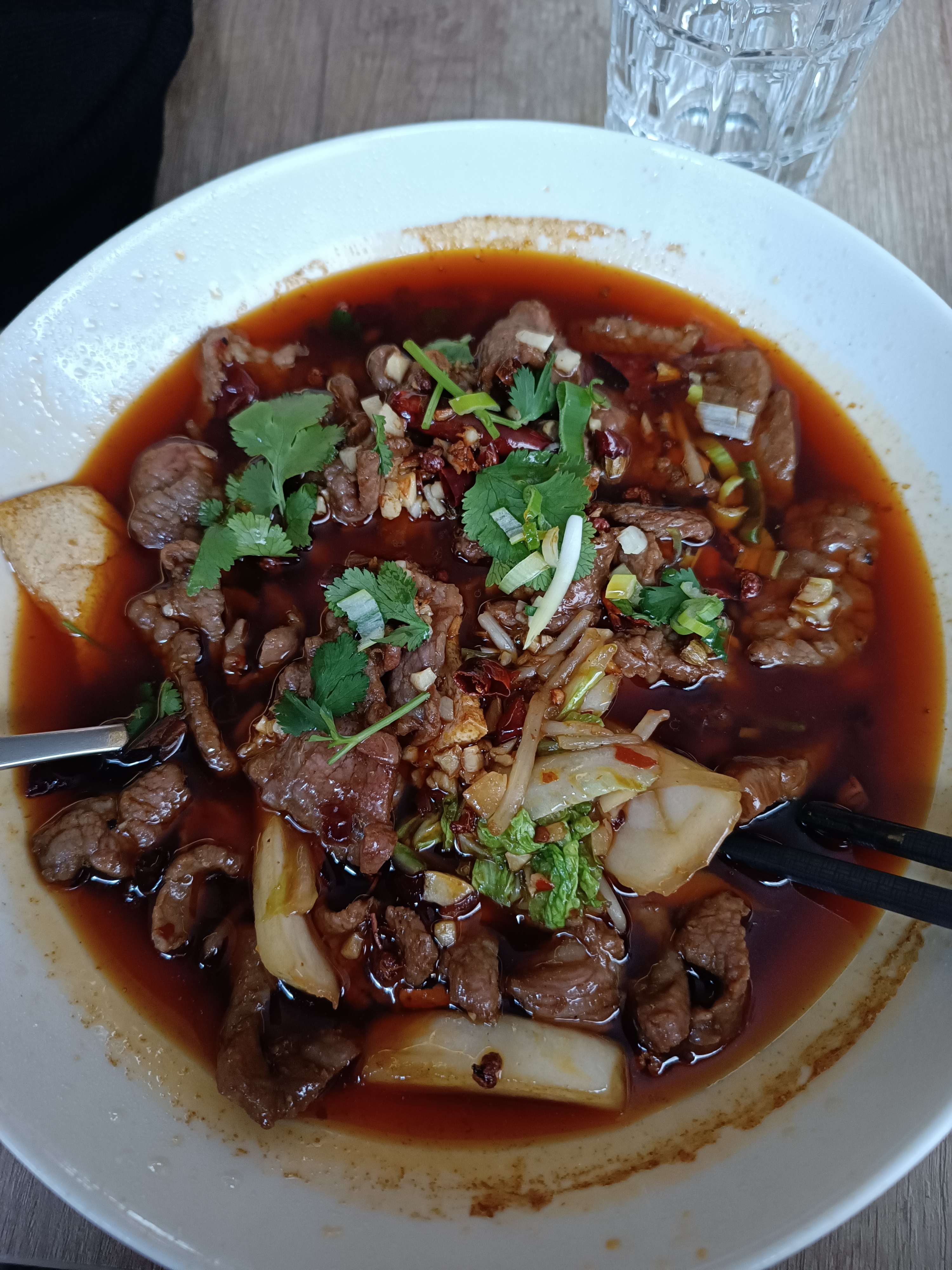 Nous avons pris une marmite de boeuf a la citronnelle et une soupe au boeuf Sichuan, et c'était absolument délicieux, et pas cher ! Je recommande !