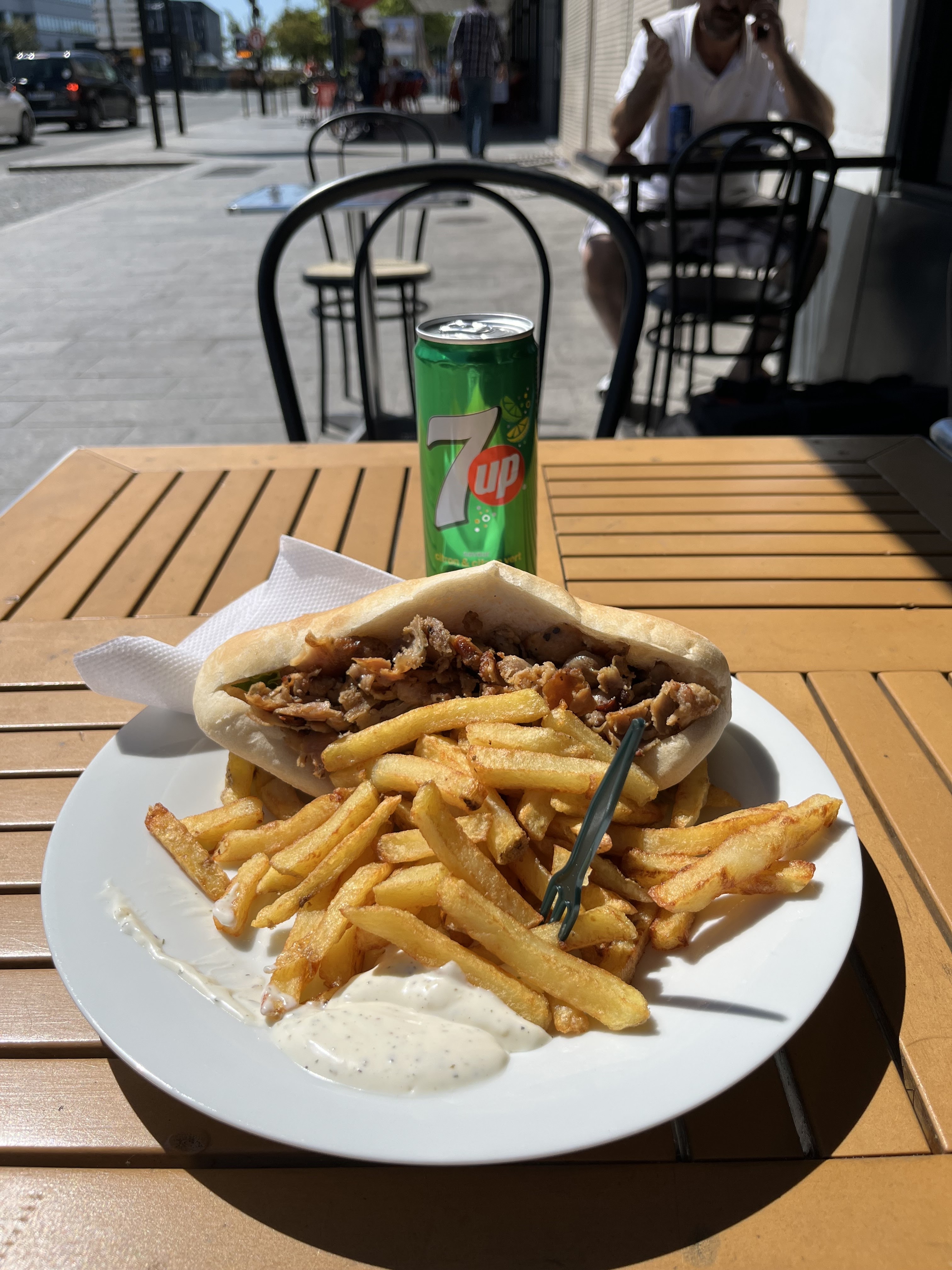 Très bon kebab, possibilités de manger à table avec couvert, bonne frites, plat pas gras du tout.