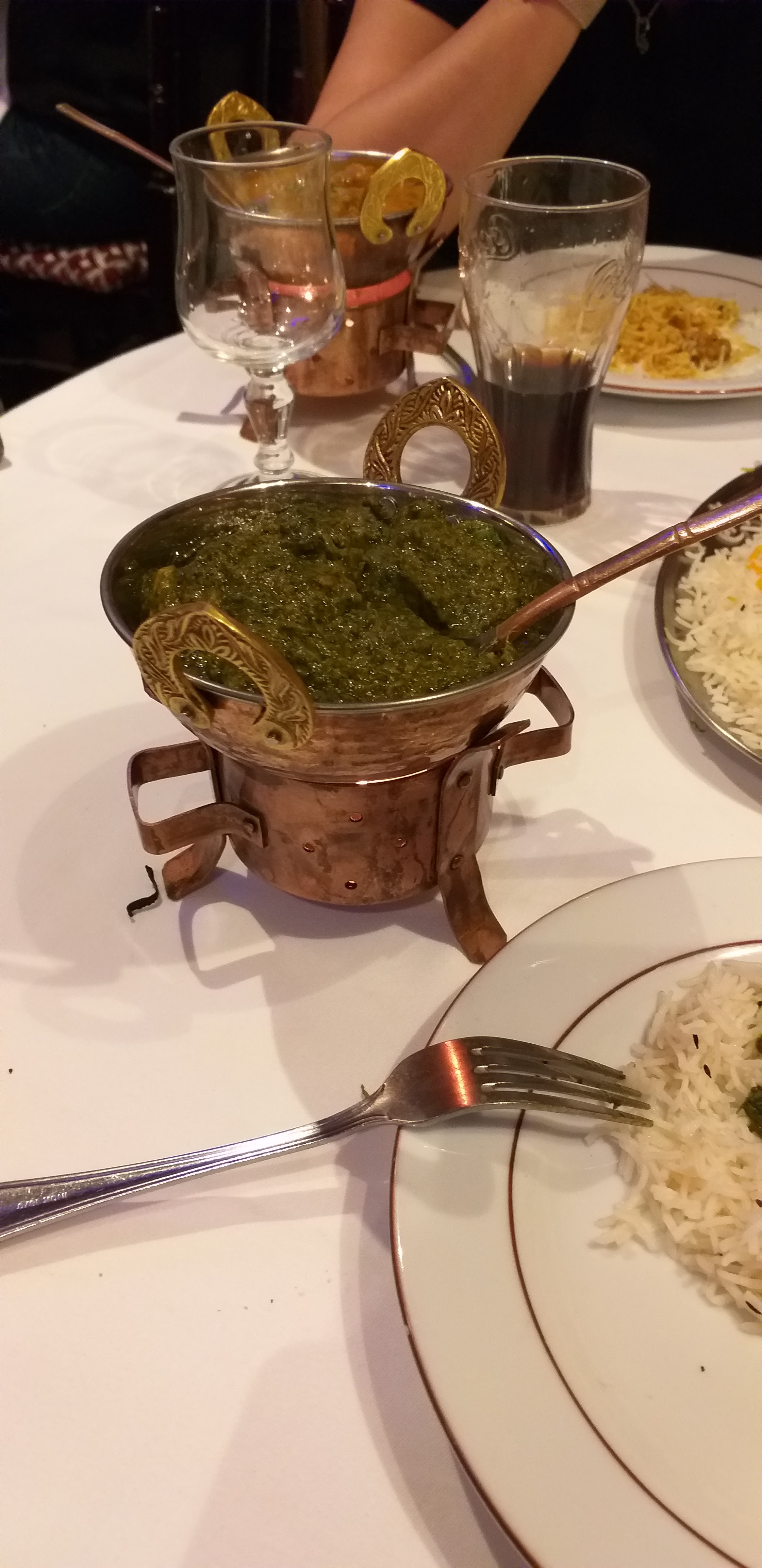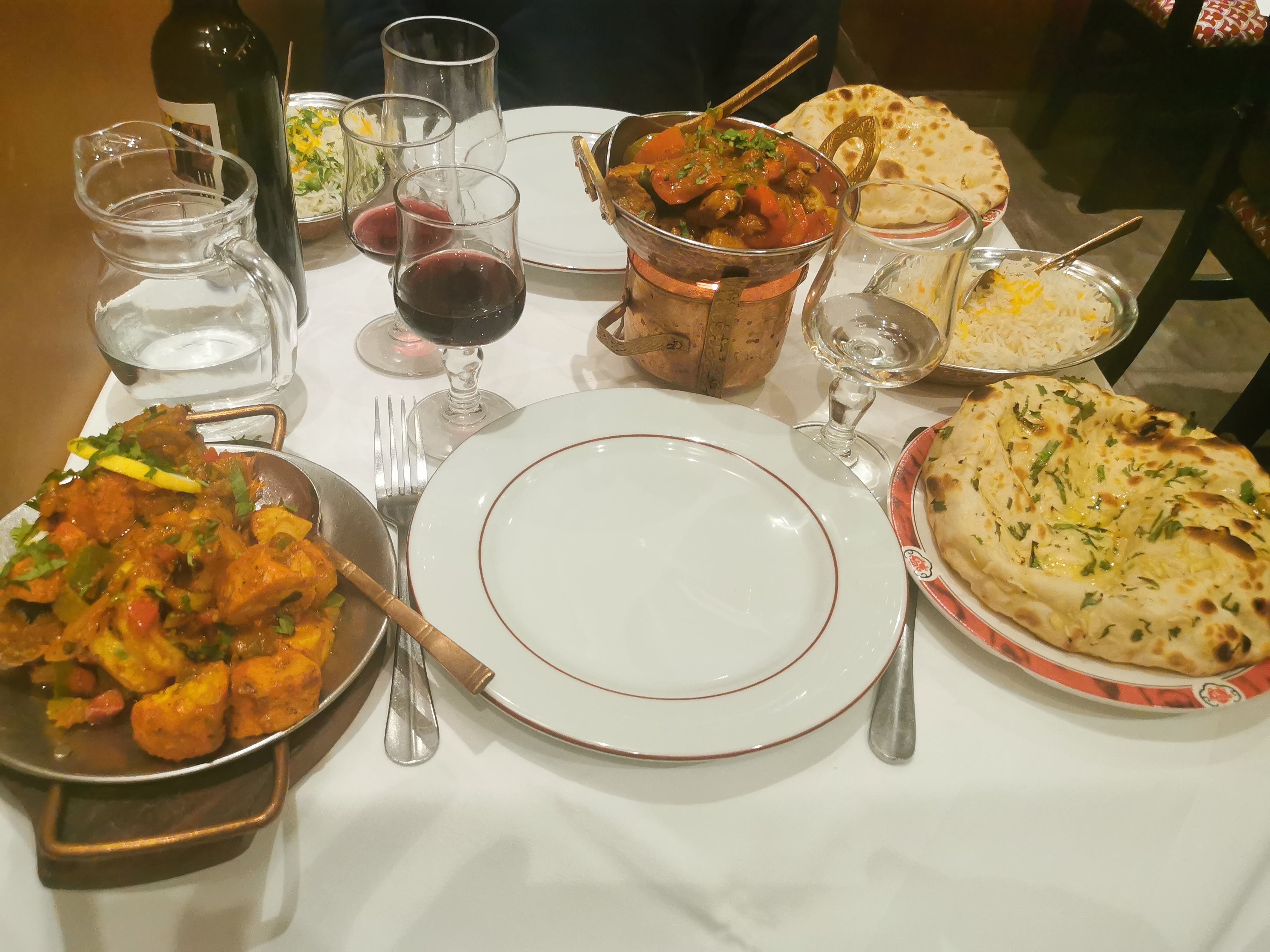 Bonne cuisine indienne, belles portions et belles assiettes. Un peu perdue dans les différents plats et pains apportés, je n’ai pas osé poser de questions, le serveur ne s’exprimant pas facilement en français. L’ambiance est assez cosy. Les tables sont proches les unes des autres. L’accueil et le service sont attentionnés
