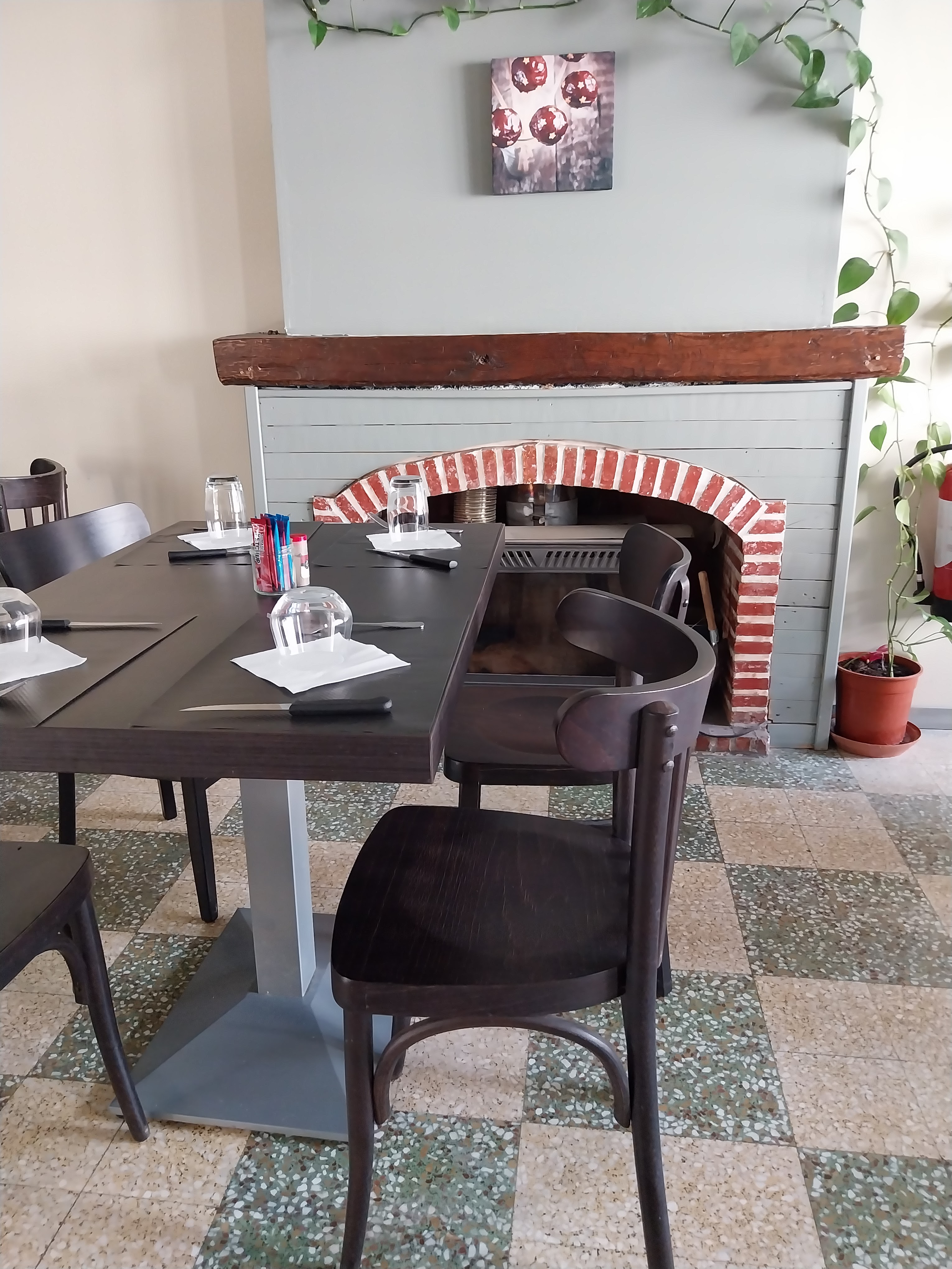 Apres un buffet froid classique comme entrée, j'ai mangé comme plat principal une souris d'agneau délicieuse, accompagnée de frites. La personne qui assure le service est très attentive tout au long du repas. Le restaurant est calme. Il y a un parking à proximité. La salle intérieure est grande et il existe une vaste terrasse extérieure aménagée pour l'été. Particularité originale, le midi, il y a une activité de brasserie, et en même temps, des plats à emporter, type pizzas ou équivalents.