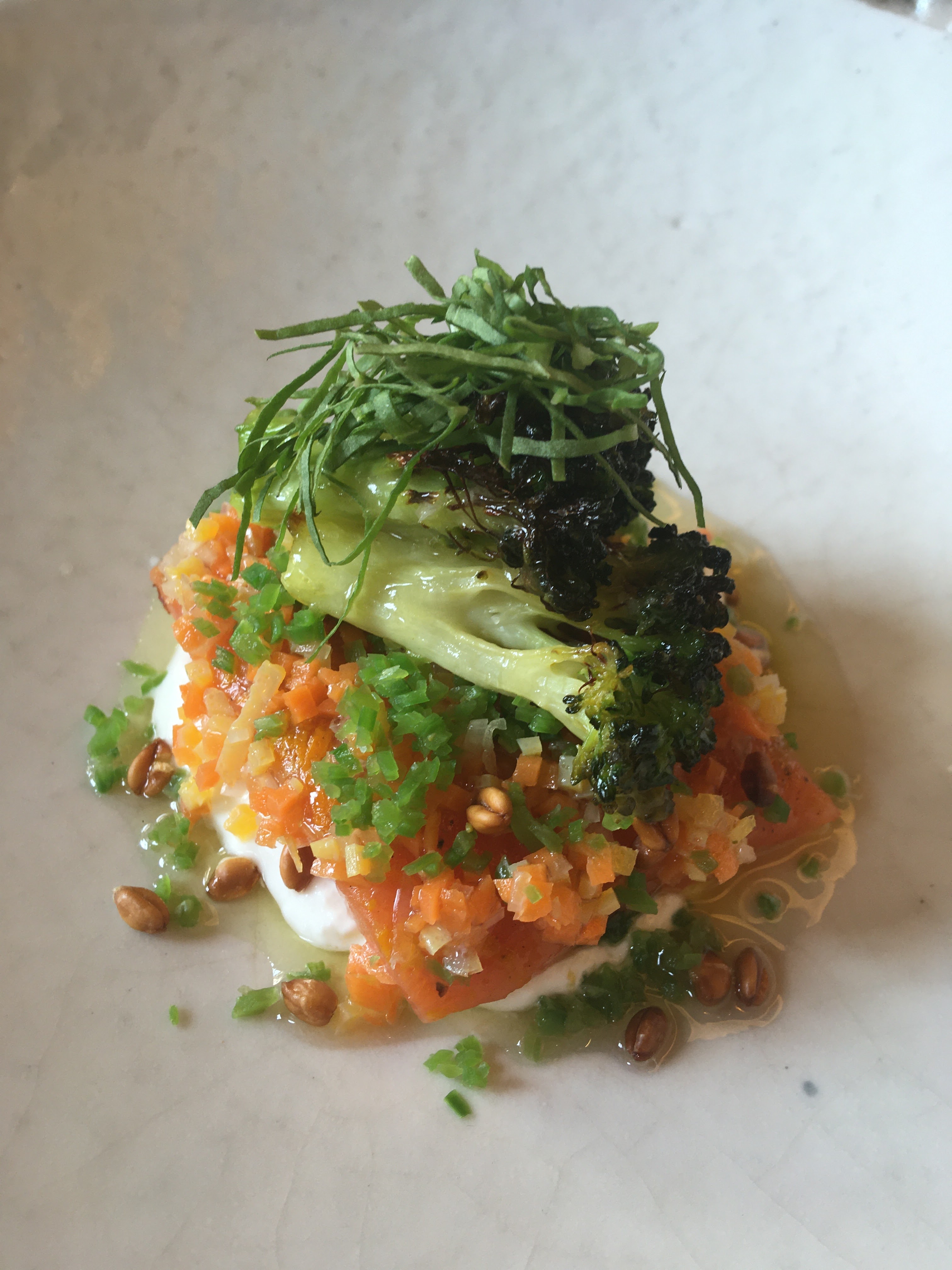 Splendide cadre pour un repas d'exception. Généreuse et fine à la fois, la cuisine de Philip Chronopoulos, inspirée par sa grèce natale, nous a charmés. Les hors d'œuvres étaient tout bonnement exceptionnels, variés, gourmands, merveilleuse introduction à la suite. Les plats très précis, magnifiques visuellement, sont construits de manière à ce que le dernier goût de chaque bouchée soit le poisson ou la viande, magnifiés par le travail du chef. Du très grand art, à vrai dire. Une cuisine douce et élégante, précise et généreuse. Attention à ne pas abuser du délicieux pain trempé dans l'huile d'olive et origan sauvage pour garder son appétit jusqu'au bout. :)