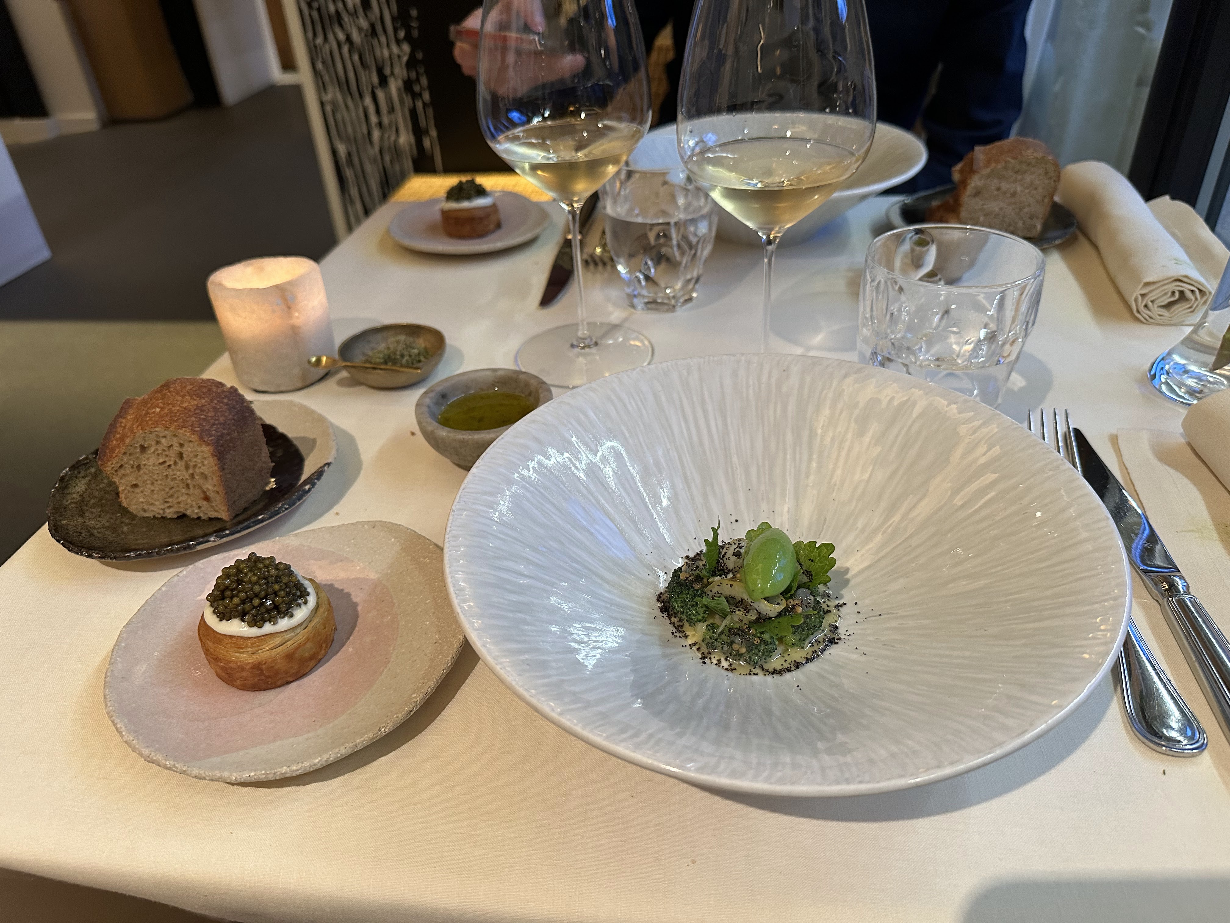 Expérience parfaite pour ce déjeuner dans un cadre parfait. L'inventivité de la cuisine mais sans ostentation, les saveurs qui régalent dans la bouche. Une parenthèse magique. 2 petits bémols. Les prix qui flambent Le personnel très attentif et professionnel rien à redire sur leur prestation.. En revanche, les tenues pas très adaptées au lieu. Des baskets blanches (à la base) qui n'ont plus de forme et ne ressemble à plus grand chose... la chemise par dessus le pantalon...On peut être chic en décontracté mais là ce n'est pas le cas et en non adéquation avec l'image de ce restaurant tout en chic discret. Nous reviendrons avec plaisir