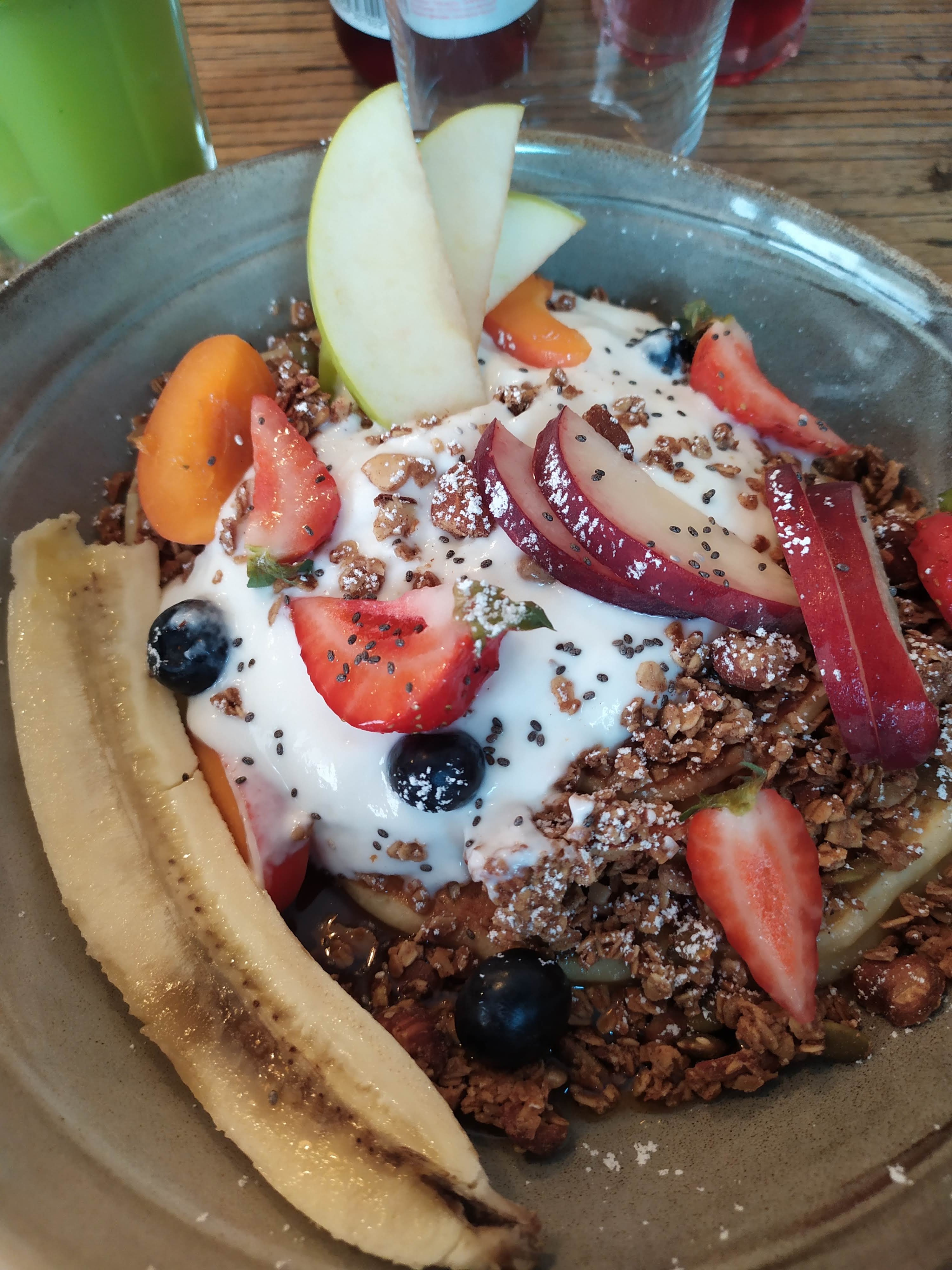 Brunch très copieux et super bon. Les plats sont colorés avec des produits de qualité. Les smoothies et jus de fruit maison sont plein d' énergie. En plus très bien situé à côté du marché.