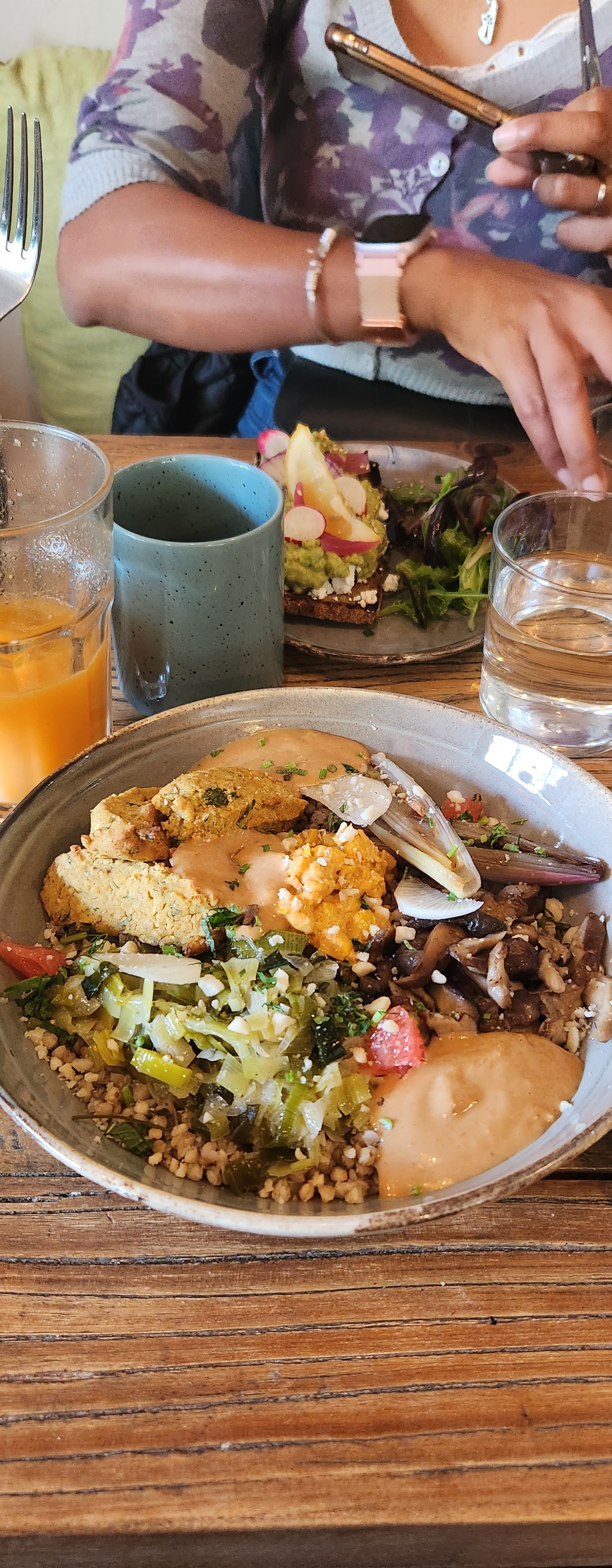 Adresse incroyable : ambiance décontractée, cuisine sublime, deco magnifique !!! Je recommande vivement. Nous avons pris le bowl du moment et le burger veggie, les portions sont généreuses, les desserts sont à tomber !!! Bref que du bonheur 🤩