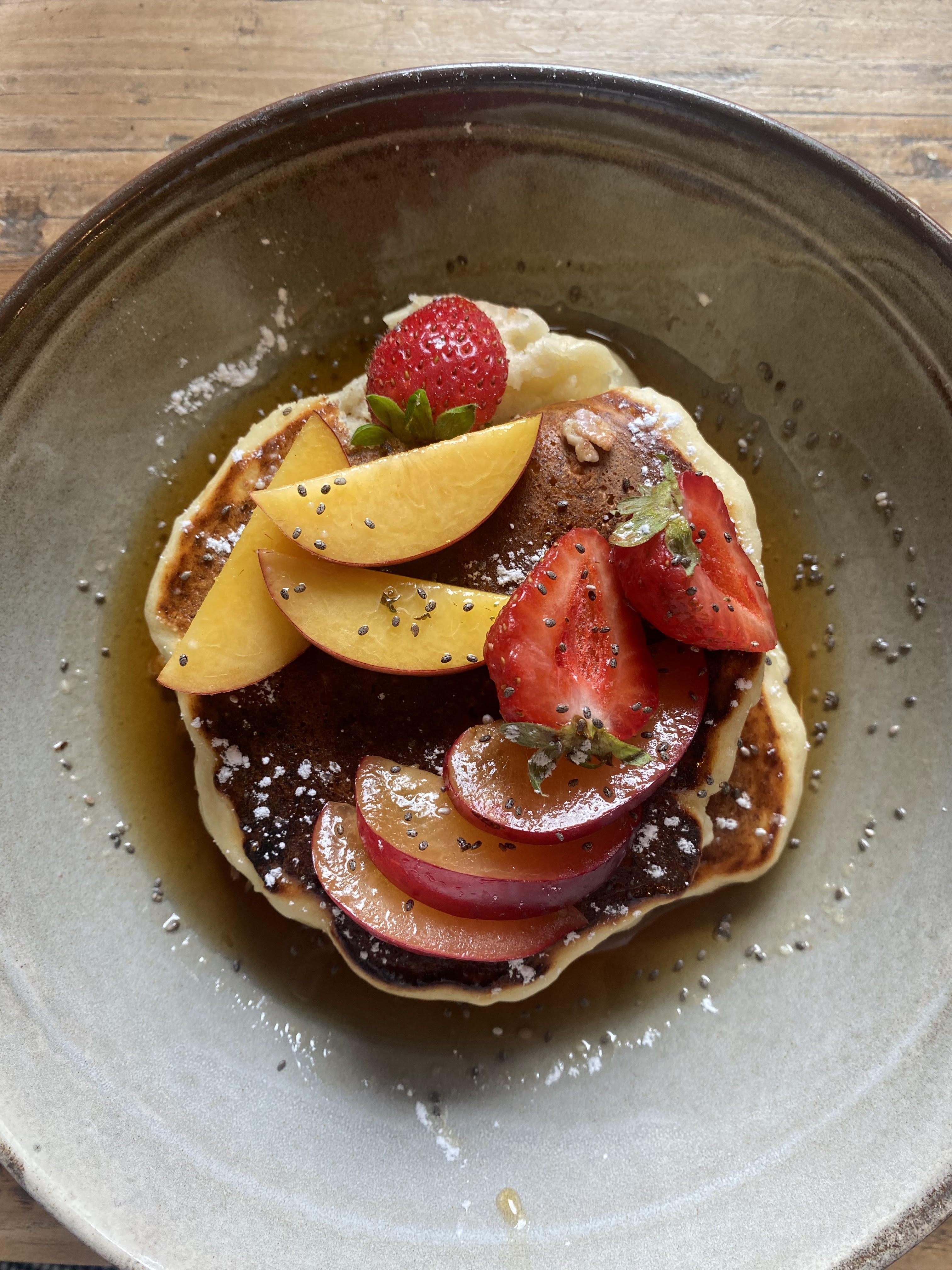 Déjeuner à 4, on à TOUT adoré, pancake salé, avocado toast, pêche ricotta... Adresse à retenir ! Et la déco ne gâche rien, top !