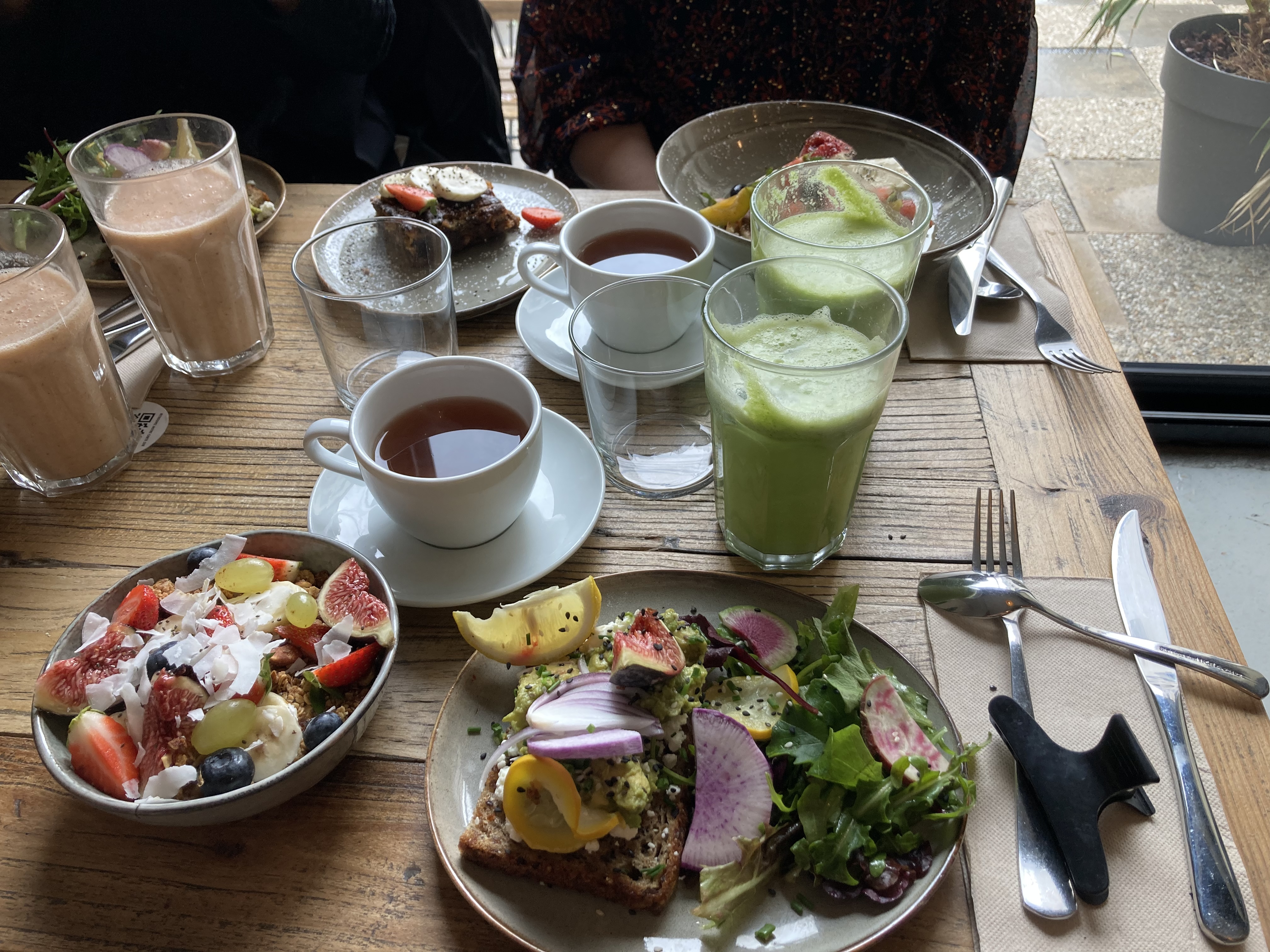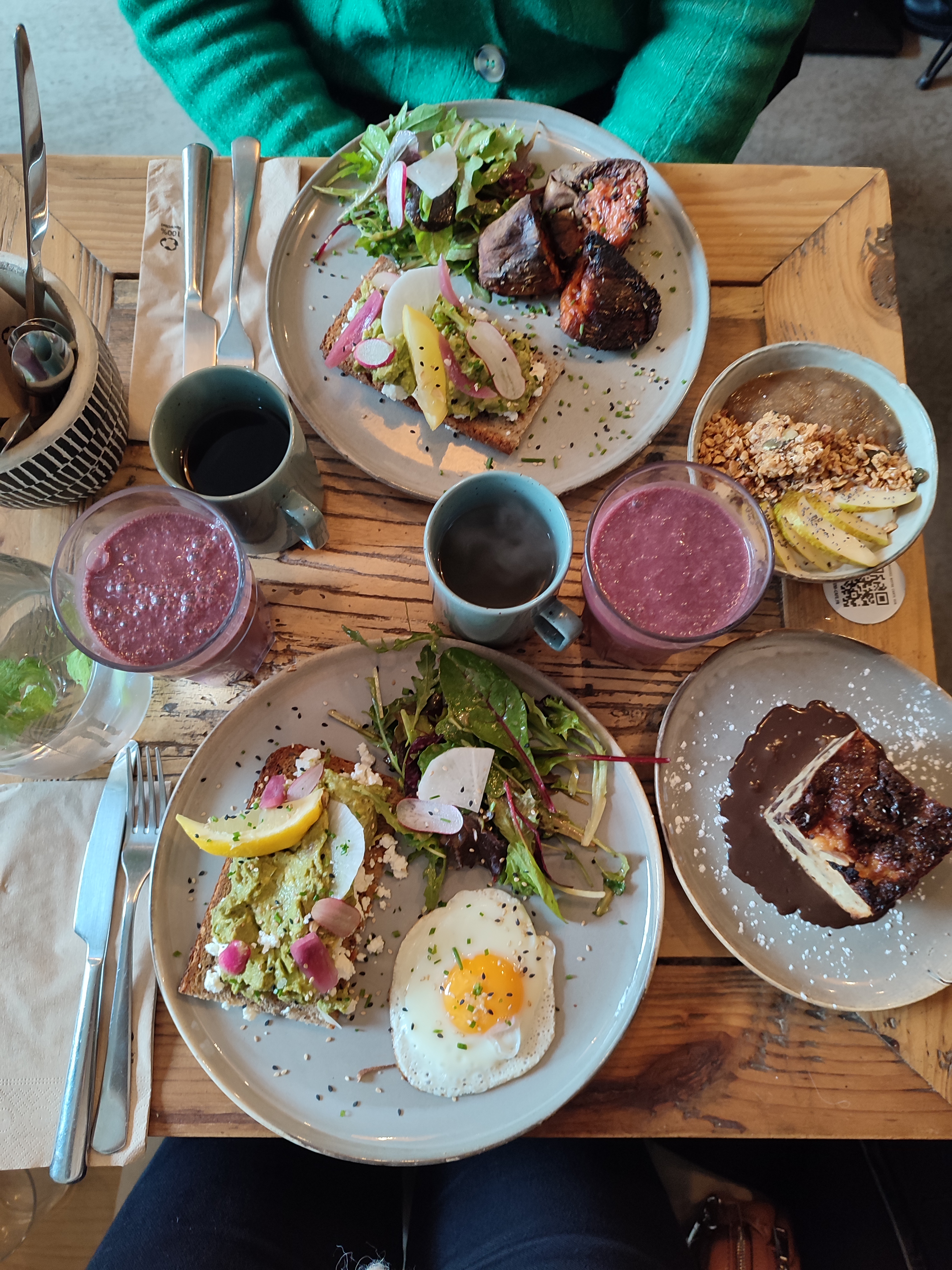 Après une attente un peu longue, on nous trouve une table pour 4 personnes. Franchement l'attente est compréhensible vu l'endroit. Les serveurs gèrent très bien l'arrivée des clients et nous préviennent des délais. Donc vraiment ça ne pose pas de souci. C'était un dimanche, on a donc pris des brunchs. Que des belles surprises, jus et smoothies faits maison. Café ou thé en illimité. Et un vrai choix de sucré ou salé avec de très belles créations. Les goûts sont parfaits. Si vous êtes de passage ou sur place, c'est un endroit à faire. Le service est impeccable, malgré l'attente. La commande est prise rapidement et on n'a pas beaucoup attendu pour les plats. Franchement super. Je mets un 4 pour l'attente mais j'aurai pu mettre 4.8 si c'était possible.