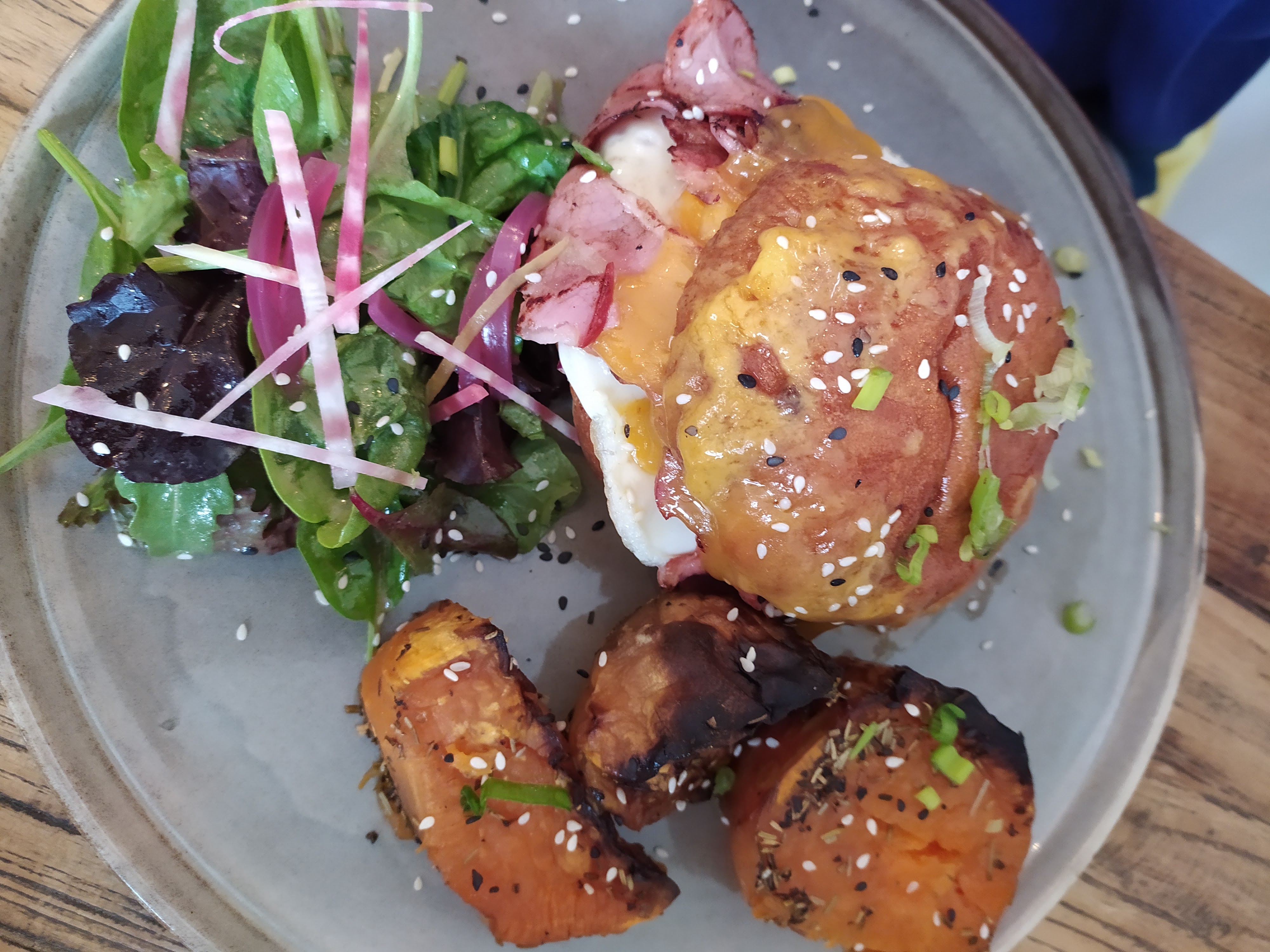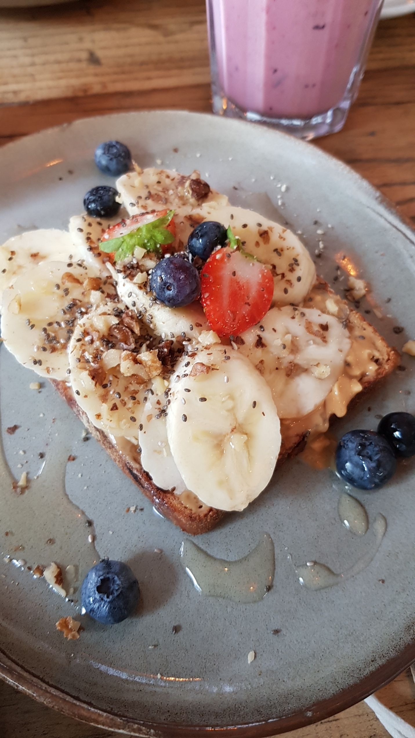 C’était la 1ère food que je me faisait un Brunch à La Rochelle !!!! Il ont déménagé pour s’installer pas loin du centre ville !! Accueil parfait 👌🏾!!! Trop gentil , serviable , font attention aux clients et sont attentifs à leur demande !! Un décor comme j’aime , jusqu’au plafond !! Après oui j’ai bien aimé mise à part un petit détail sur le toast Banana Bread j’aurais aimé que le pain soit plus plus moelleux c’est-à-dire comme un pain perdu Parce que avec le beurre de cacahouète c’était compliqué ça me rester sur le palais, il aurait fallu que le père de cacahouète soit plus coulant Mise à part ça le plat était très bon le smoothie également et un plus pour le thé aussi